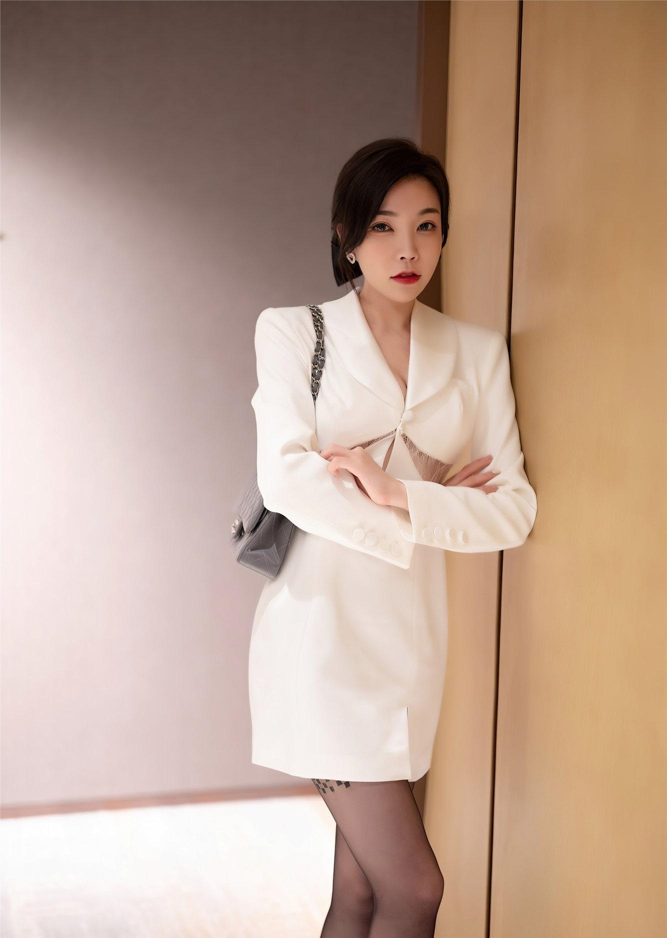 美女模特徐莉芝:硬朗与柔情结合的西装裙,展现职场女性的高贵优雅