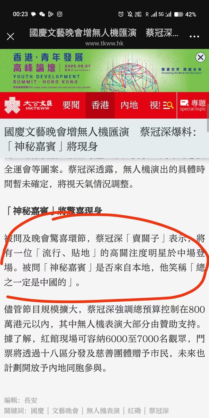 周深 怎么去香港了,流量还够用吗? 哈哈哈,这个梗是过不去了[笑哭] 周深IP显示在香港,他去香港做饭了! 难道是因为图三(香港国庆晚会)?10月2号直播! 难怪要把直播麦带去澳门,生日在酒店直播的,大湾区的第二天还在澳门 ,不然按他的时间管理,早回上海了! 原来9.28在 湾区升明月, 929在澳门生日直播,昨天就到香港了! #周深#