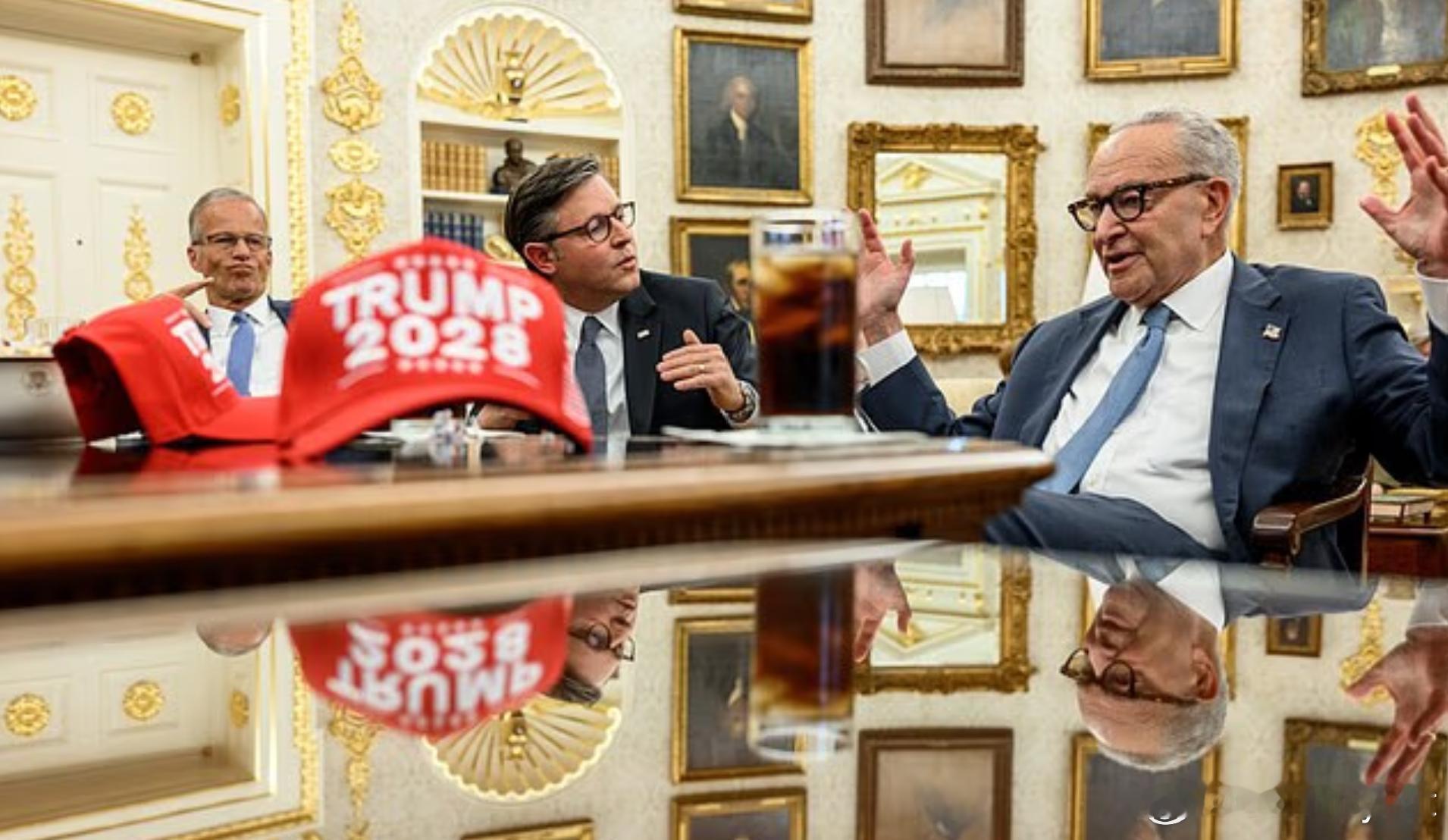 僵局焦点在于医保资金,民主党要求恢复补贴,共和党拒绝让步。就在关门前夕,特朗普还在社交平台发布谈判合影,桌上摆着“特朗普2028”帽子,引发民主党领袖不满。