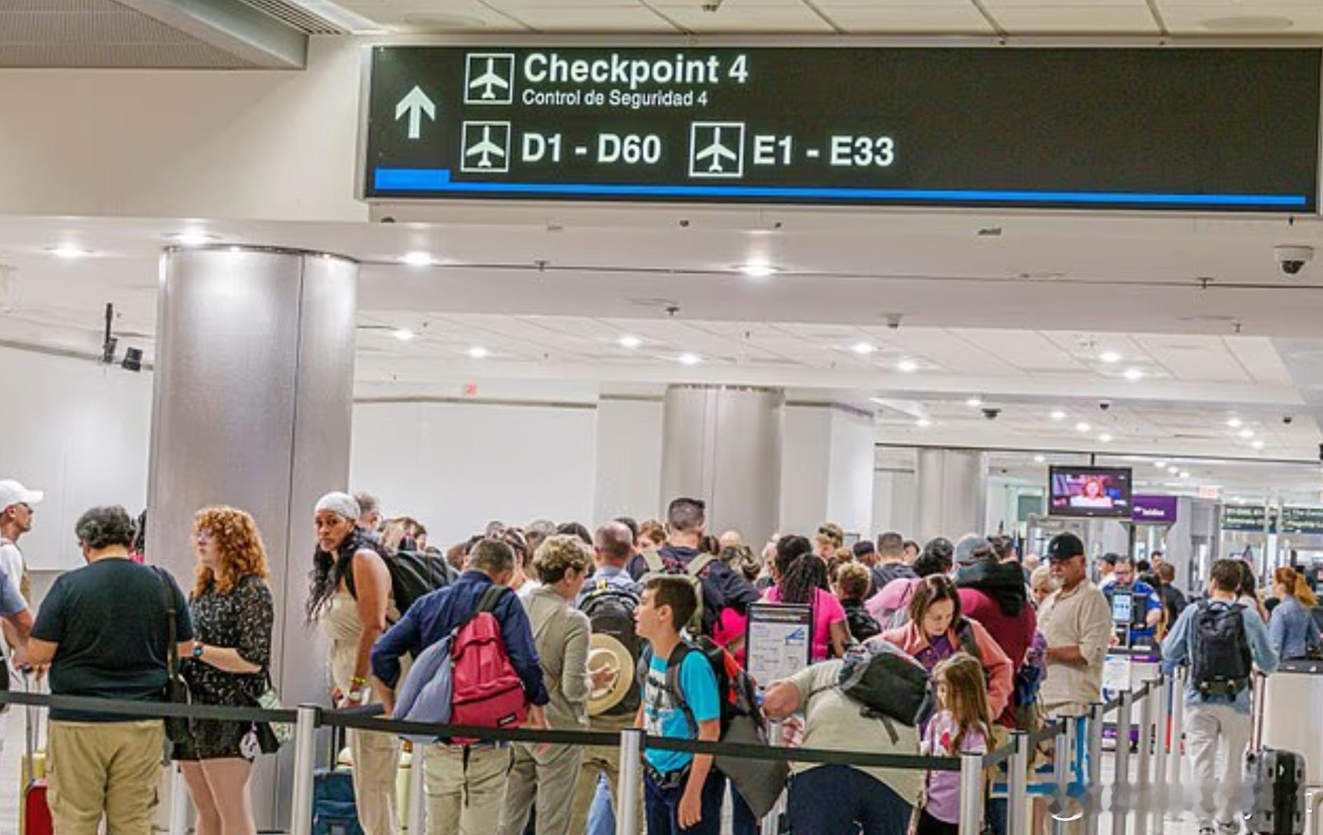 兔:佛罗里达州迈阿密,迈阿密国际机场,人群密集,等待 TSA 检查站进行安全检查(资料照片)