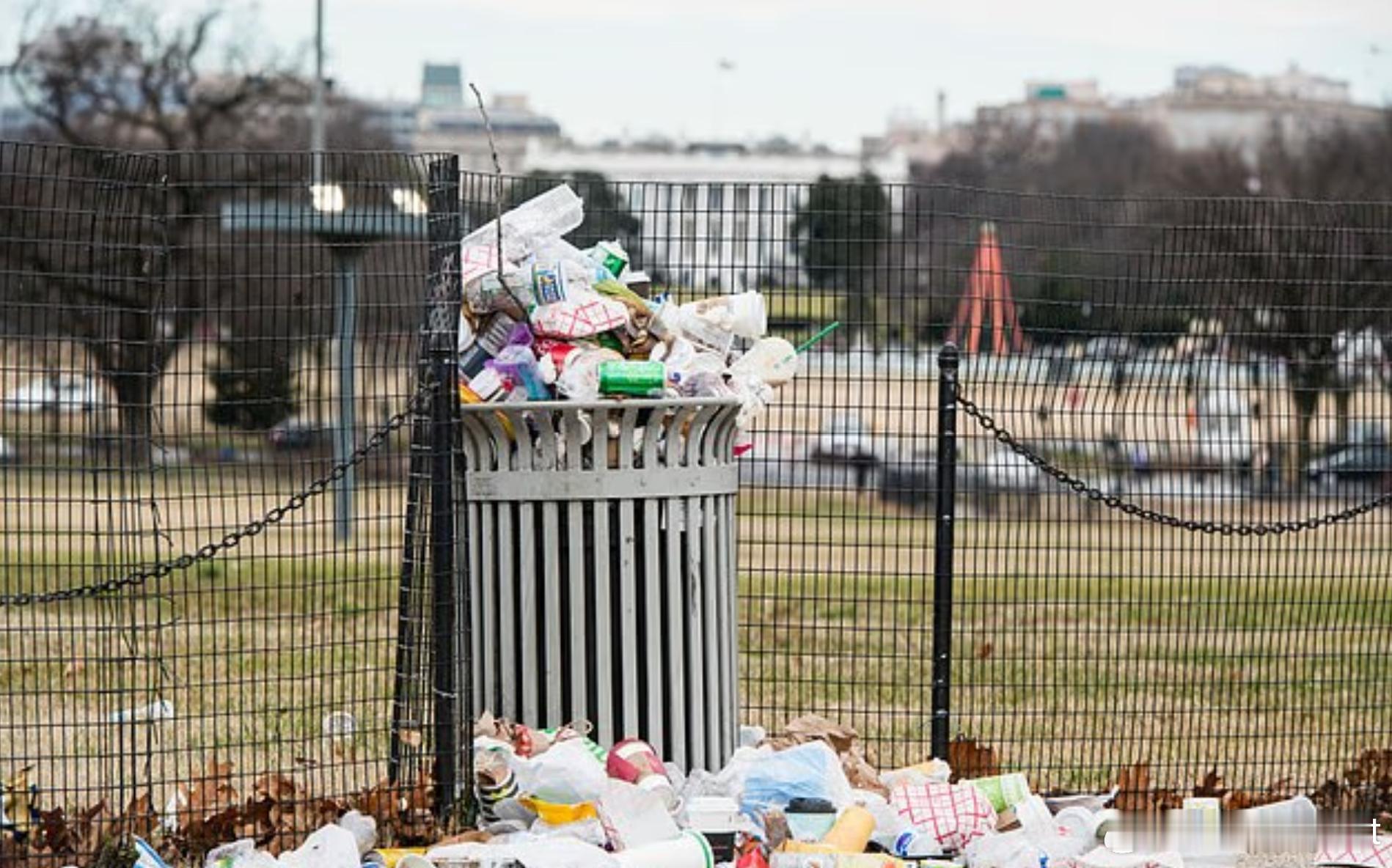 图3:白宫对面的国家广场上,垃圾溢出了垃圾桶(资料图)