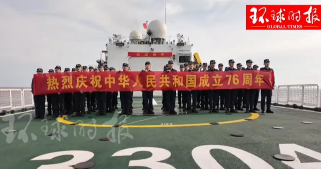 据来自环球的消息, 国庆节来临之际,中国海警, 在黄岩岛海域举行了升旗仪式, 这