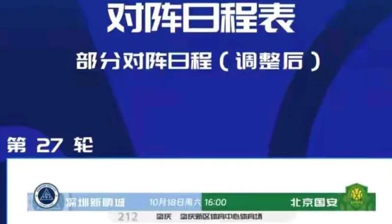 北京国安下轮联赛延期,原主教练重返亚洲! 北京国安与深圳新鹏程的第27轮联赛,因深圳赛区赛场问题,延后一天于10月18日进行。另外备受瞩目的原北京国安主教练施密特,并没有出现在国足选帅名单当中,而是与日本足协签约,正式出任日本J联赛全球足球顾问,任期9个月。他将参与青训梯队的现场指导,为教练员(主教练、助教)和体育总监举办研讨会,并与J联赛及J俱乐部分享专业见解。