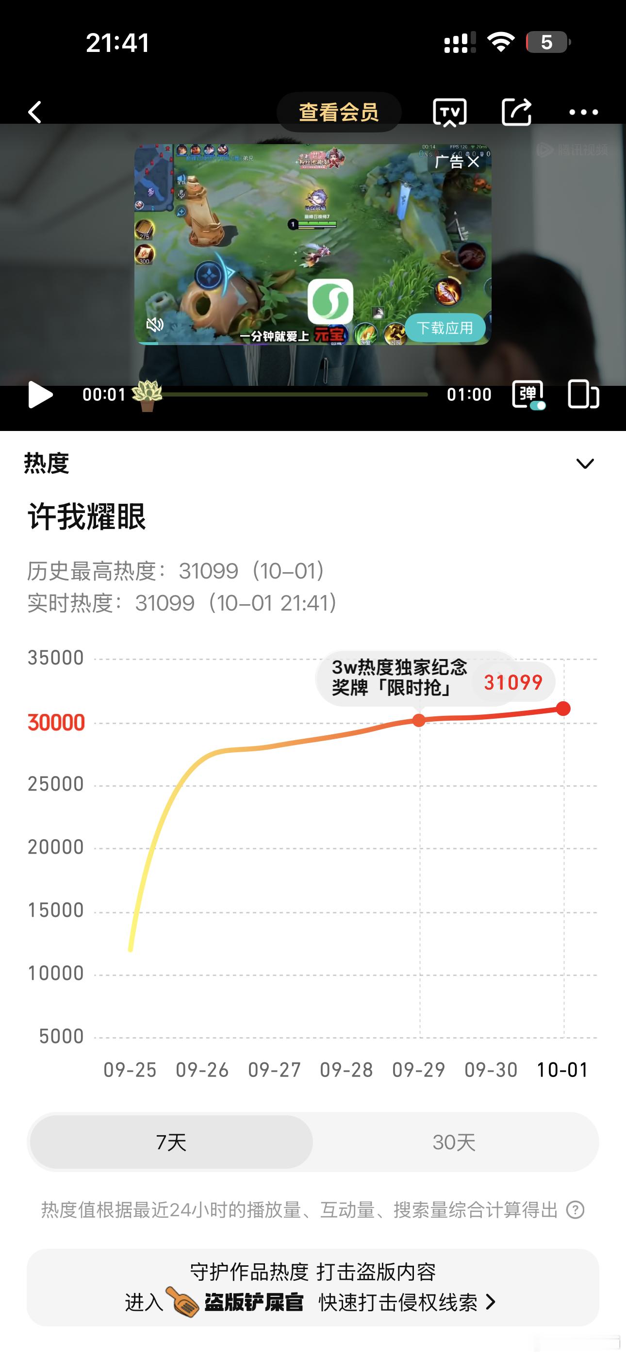 许我耀眼热度31000了!!!九点半就31000了!!第六天!!!每天都在疯狂拉升!!!大爆剧真的来了!!!