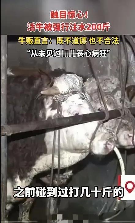 广西钦州这牛主人也太丧尽天良了! 卖牛前往牛肚子里猛灌水, 排完水直接轻了200斤,这哪是卖牛,分明是把老牛往死里折腾! 老牛一辈子帮人耕地干活,忠诚又卖力,到老了不仅要被卖掉,还得先遭这“灌水酷刑”,想想都心疼!之前别人最多灌几十斤,这家伙直接灌出200斤的水分,眼里只有钱,连最基本的良心都没了! 牛贩说这既不道德也不合法,真是一点没说错——靠折磨动物骗钱,就算赚了也不安心,老话讲“人在做天在看”,这种亏心事早晚会遭报应。 你要是遇到这种缺德的商家,会直接戳穿还是找相关部门举报?
