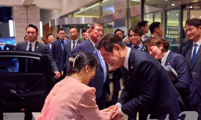 日本首相夫人石破佳子在韩国参加活动,穿粉色长裙气质太绝了,可惜的是李在明夫人没有现身! 9月30日,日本首相石破茂和夫人抵达韩国访问,等石破茂和夫人到了之后,李在明在没有夫人的陪同下亲自接待他们。 画面中,石破茂夫人造型非常优雅,只见石破茂穿一件粉色长裙,还搭配珍珠项链,造型又漂亮又减龄,看上去石破茂夫人才四十来岁的样子。 按理说韩国第一夫人金惠景应该陪伴石破茂夫人的,可惜的是金惠景好像有点疾病,所以就不能陪伴日本首相夫人了。 所以李在明就充当了总统和夫人的身份。
