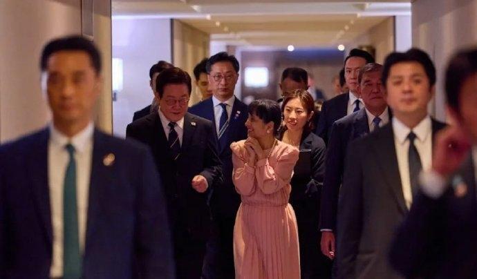 日本首相夫人石破佳子在韩国参加活动,穿粉色长裙气质太绝了,可惜的是李在明夫人没有