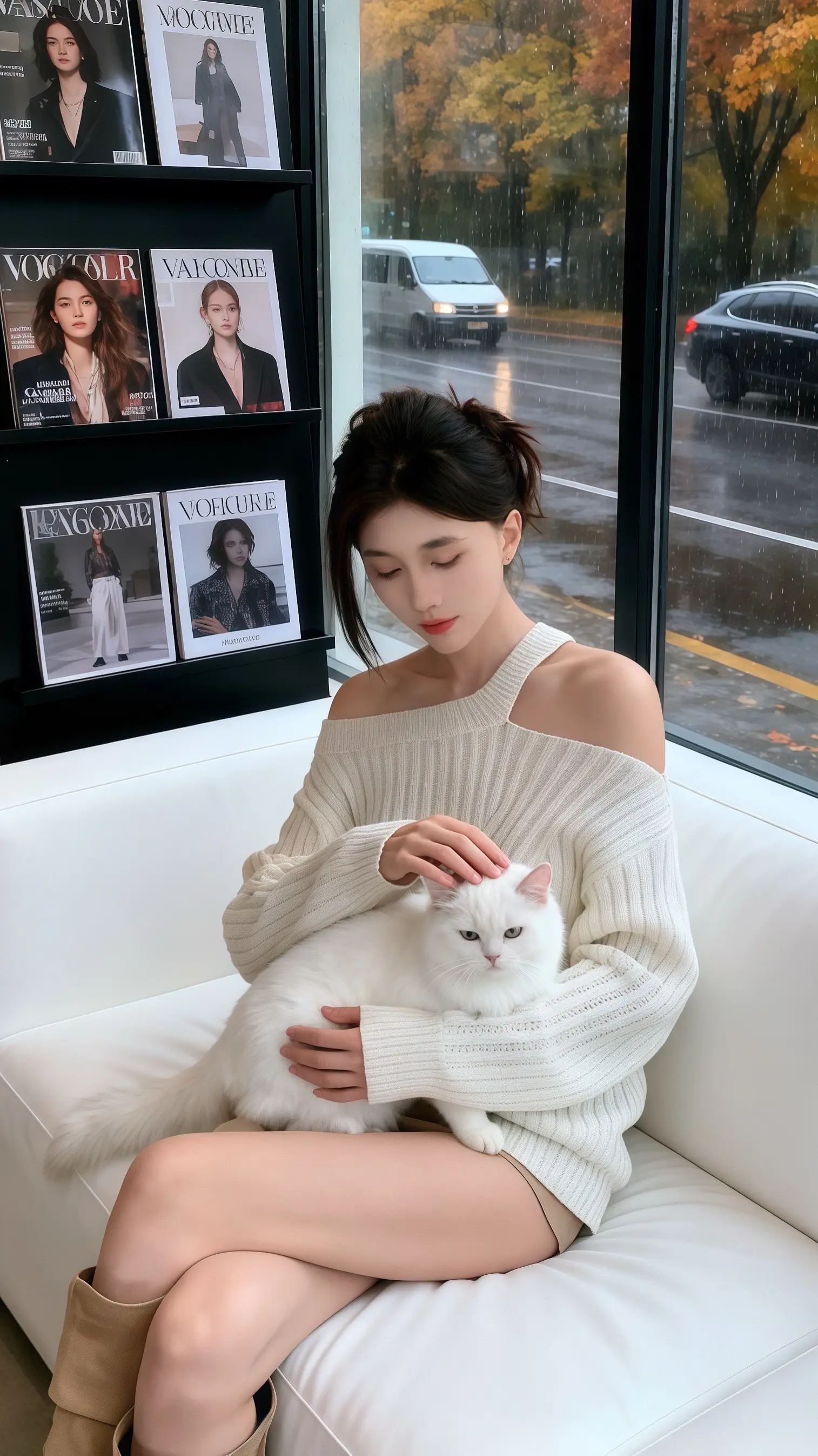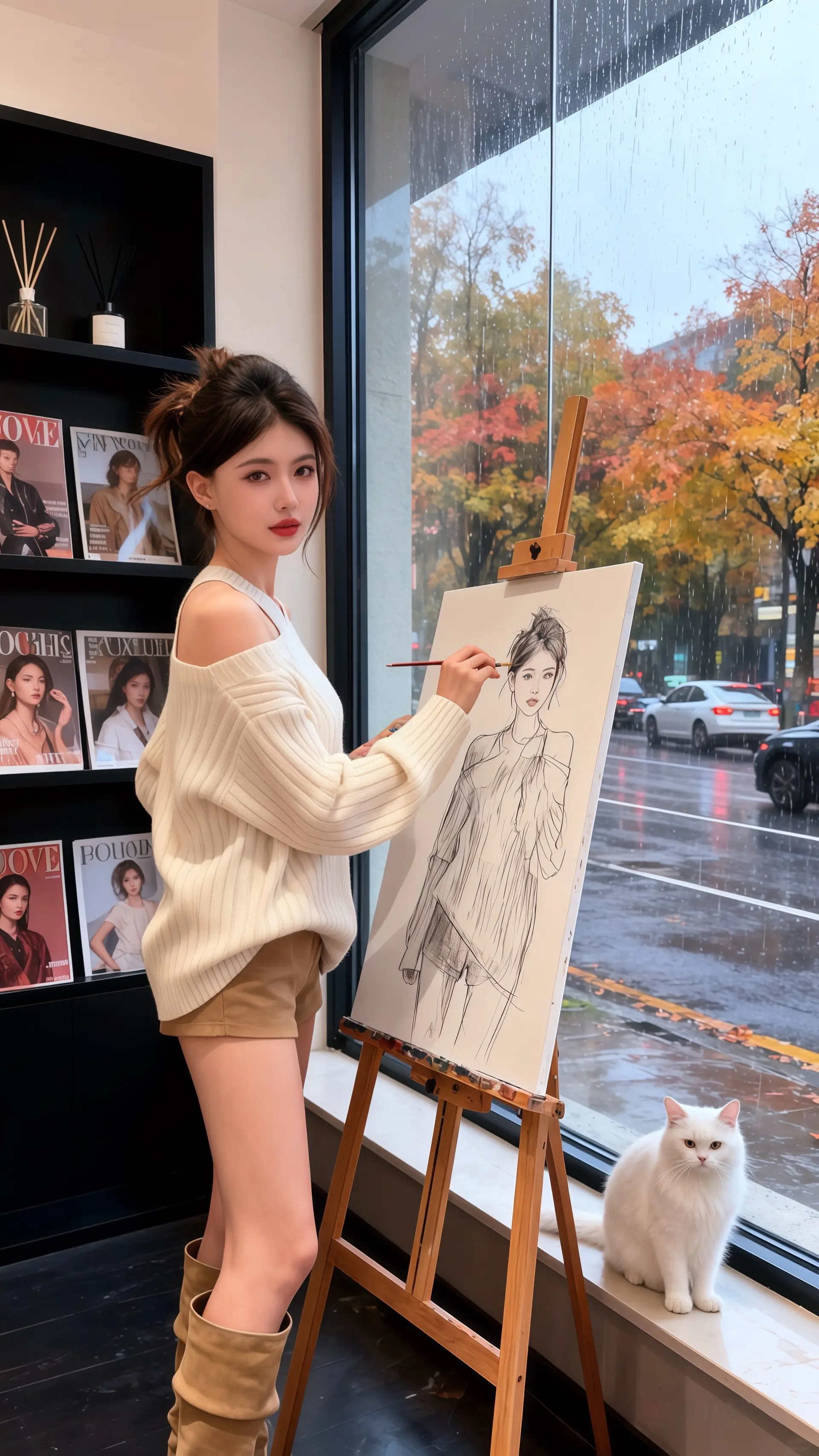 画板上的自己、窗边的白猫、雨幕里斑斓的秋叶,都成了这套穿搭的“背景板”。原来穿搭的高级感,从不是繁复的堆砌,而是像创作一幅画般,用色彩和剪裁的默契,勾勒出专属于秋日的松弛与优雅。这套搭配,便是我写给秋天的第一封时尚情书。