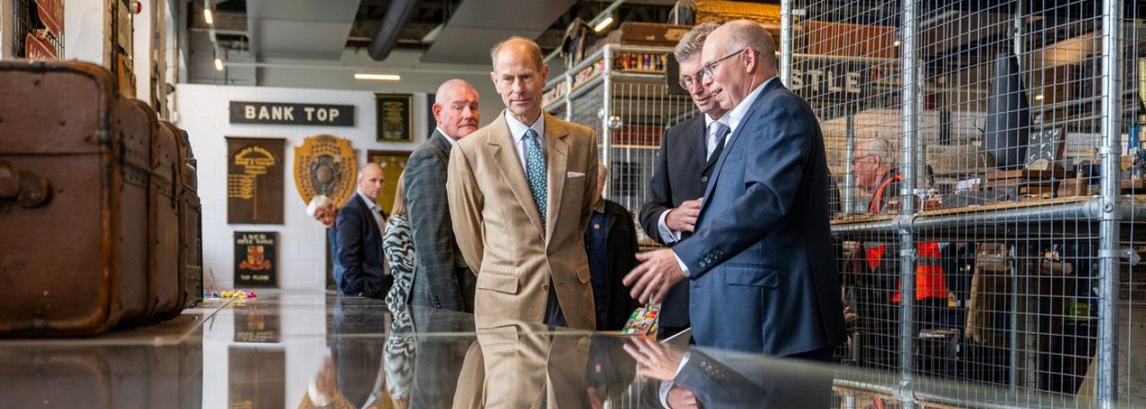 爱丁堡公爵参加斯托克顿和达林顿铁路200周年庆典 2025年9月30日,公爵出席了在达勒姆举行的庆祝活动,纪念斯托克顿和达勒灵顿铁路首次旅程200周年。 第一次公开的S&DR旅程于1825年9月27日从希尔登到斯托克顿,经达勒姆进行。在此之前,它已经经过测试,但在这一天,机车“旅行者1号”牵引了几节装有煤炭和货物的车厢,以及一辆名为“实验”的车厢,载有付费乘客。当火车到达斯托克顿港时,几乎有600人上了车。这段26英里的旅程标志着我们今天所知的现代铁路的诞生。 在参观希灵顿的“机车”时,爱丁堡公爵会见了新修复的“机车”一号的工程团队,并乘坐了“实验乘客车厢”,这是一辆1825年车厢的复制品。 公爵随后前往达灵顿的霍普特敦,参观了“蒸汽到未来”和“蒸汽巨兽”两个当前的展览,这两个展览庆祝了铁路行业和标志性的蒸汽机车,如尼格尔·格雷斯利爵士和“飞 苏格兰人”。