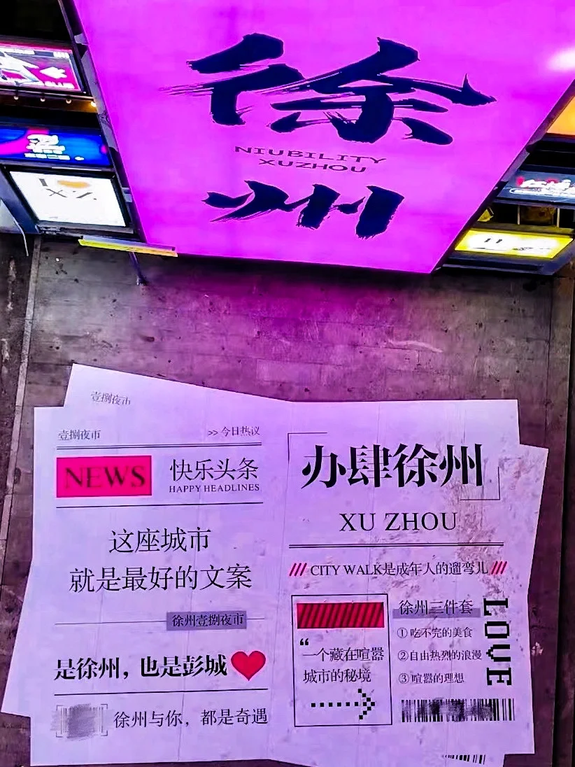 徐州网红墙地标就在这,夜市上有超多徐州本地小吃,地锅鸡、羊盘肠、把子肉、酱香米线、烧烤都还不错