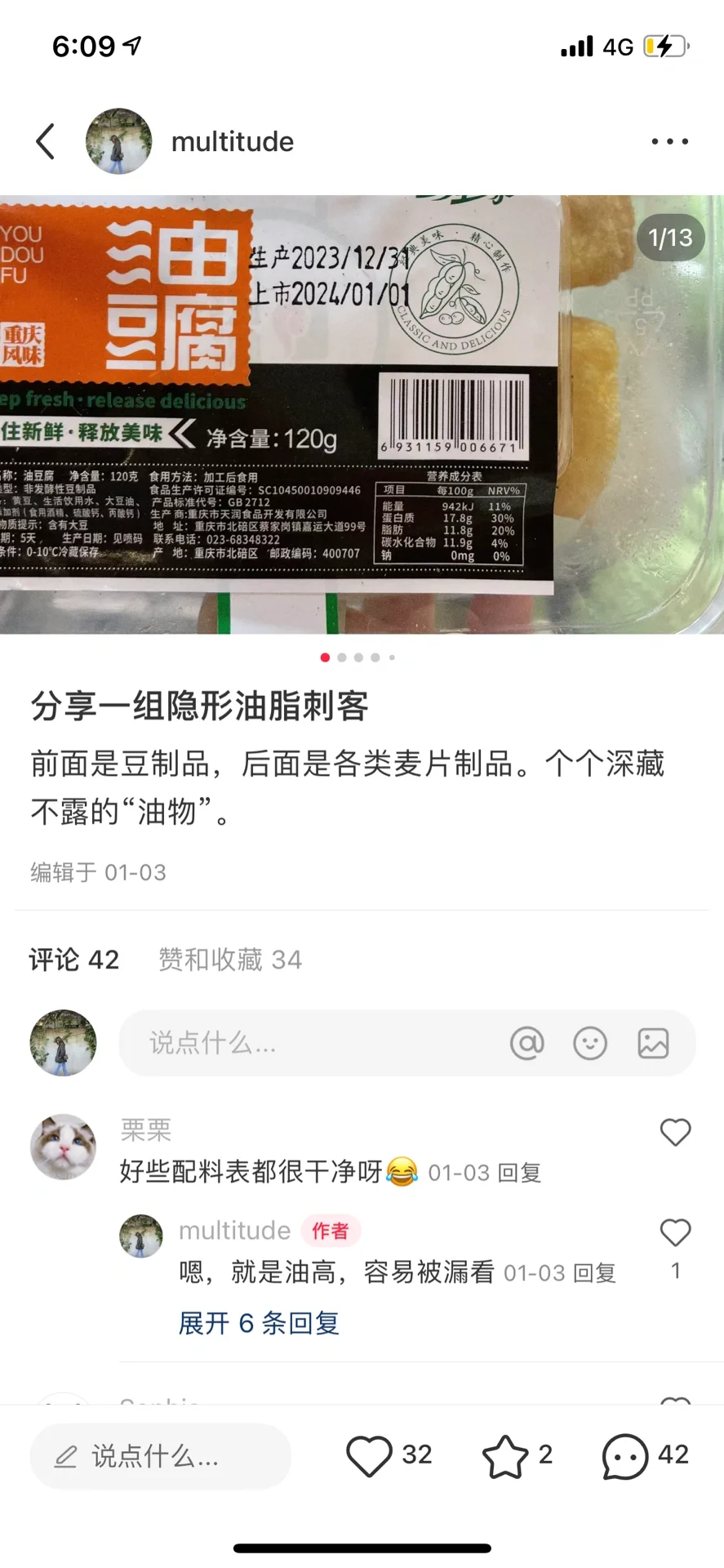 昨天看到一些朋友在评论区探讨豆腐,今天就专门聊聊豆制品的坏处,你们大概经常听到它的好处[大笑R] 我自己是基本不碰豆制品的,我会在杂粮饭里加入一些杂豆、饭豆,但不会用豆制品替代动物性食品。我不吃豆制品的原因主要有两点。 1、我在之前的笔记里带大家一起观摩过豆制品的油脂含量。比如成品豆浆的油脂含量每百毫升油脂含量3-7g不等,豆腐每百克油脂含量10-20g,腐竹、豆皮每百克油脂含量20g以上,包浆豆腐、豆腐果每百克油脂含量30g以上,炸豆皮、响铃卷更是每百克油脂含量70g以上等等。且不说烹饪用油就已经油脂含量非常高了,加上豆制品大多要和重油重盐的调理搭配烹饪才好吃,比如熊掌豆腐(油炸过再浇酱汁),比如麻婆豆腐(厚厚的油覆盖才是精髓),这样下来更是油脂大大超标了。从油脂含量来说,中碳饮食结构下不可能大量吃豆制品,否则会油脂大大超标。 2、我通过反复自测,发现豆制品会引起肾功里面的尿素值升高,结合我看的书里所说大豆及其制品虽然是植物界的完全蛋白,但人体对它的吸收率并不高来看,确实也符合,吸收利用不了的蛋白质造成体内生成的含氮废物增多,影响肾功。 另外,大豆作为食物种子,富含皂苷、植物凝集素,这是植物保护自己种子必备物质。又因为其富含植物蛋白,因此过多食用会引起胃肠胀气、消化不良等情况。豆腐含嘌呤较多,嘌呤代谢异常的痛风病人和高尿酸血症患者多食易导致痛风发作。 以下为网络信息整理 大量摄入豆制品会造成碘缺乏。大豆制品中含有一种叫做皂角苷的物质,这种物质虽然对预防动脉粥样硬化有好处,但同时也会促进人体内碘的排泄。长期过量食用大豆制品,尤其是豆腐,很容易引起碘的缺乏,从而可能引发碘缺乏病,碘的缺乏会引起甲状腺结节。 不要以为皂苷可以预防动脉粥样硬化,大量摄入豆制品会促使动脉硬化形成。豆制品中的蛋氨酸,在酶的作用下转化为半胱氨酸。半胱氨酸会损伤动脉管壁内皮细胞,易使胆固醇和甘油三酯沉积于动脉壁上,促使动脉硬化形成。 因此,豆制品需要限制摄入量,很多朋友豆皮一盆一盆的吃,豆腐不限量,这样的饮食是有问题的。