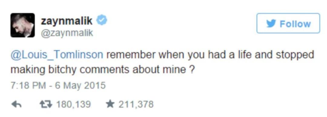 近日,NETFLIX 宣布,退出一档 Zayn Malik 和 Louis Tomlinson 拍摄旅行纪录片。 两兄弟正式和好。 两人在2015年曾经分道扬镳,Zayn 当时通过推特平台直接点出 Louis Tomlinson 的大名,要求他不要再说他的坏话,自己过自己的生活。 说明了直男之间没有什么隔夜仇。
