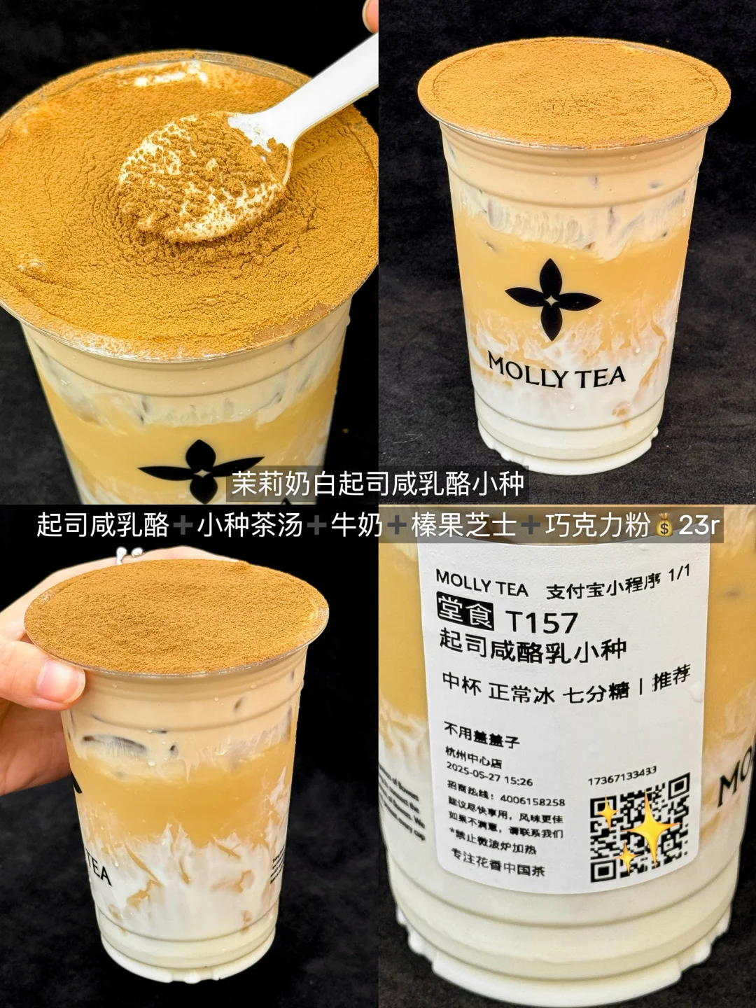 个人觉得是茉莉奶白坠好喝的一杯!这边建议是开盖喝,茉莉奶香茶底搭配顶部的芝士榛果香和可可香很搭!如果点不另外加糖的话,咸味不容易品到~喜欢咸奶茶的话建议不要选不另外加糖哦