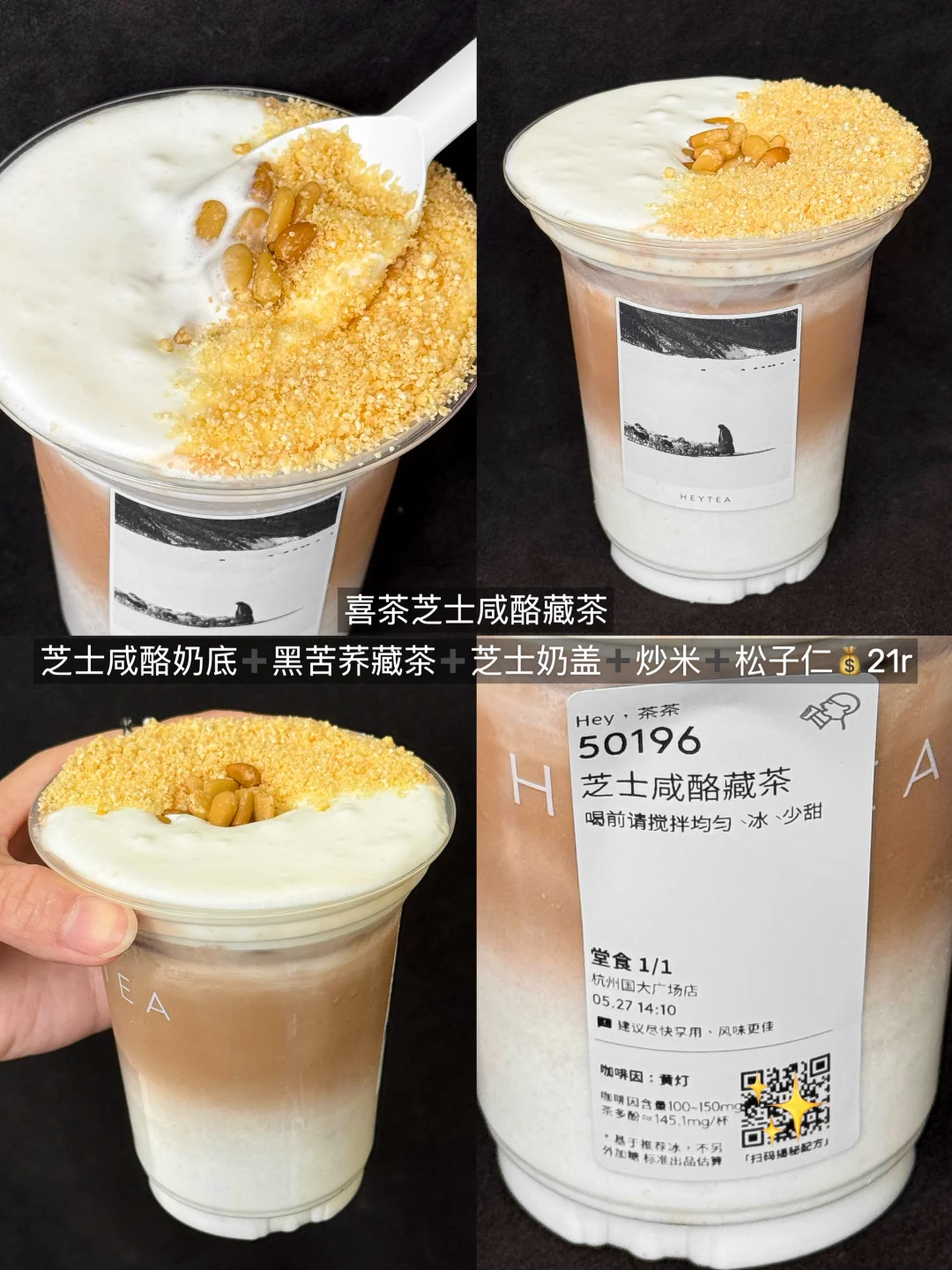 芝士咸酪奶底➕黑苦荞藏茶➕芝士奶盖➕炒米➕松子仁💰21r