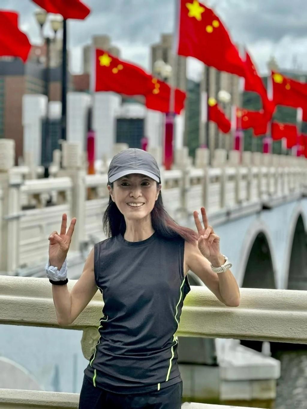 另外,米雪于昨日在社交网发文,她写道"亲爱的祖国生日快乐,国庆76周年!共同祝福伟大祖国:生日快乐,繁荣昌盛! 今天一起为祖国庆生 国庆",并上载数张近照。图中见到米雪穿上黑色运动背心、头戴灰色帽子跑步,她于满布国旗的桥上举V字手势笑逐颜开,可能因为跑步的关系,米雪未有化上浓妆,故此面上罕有露出老态。