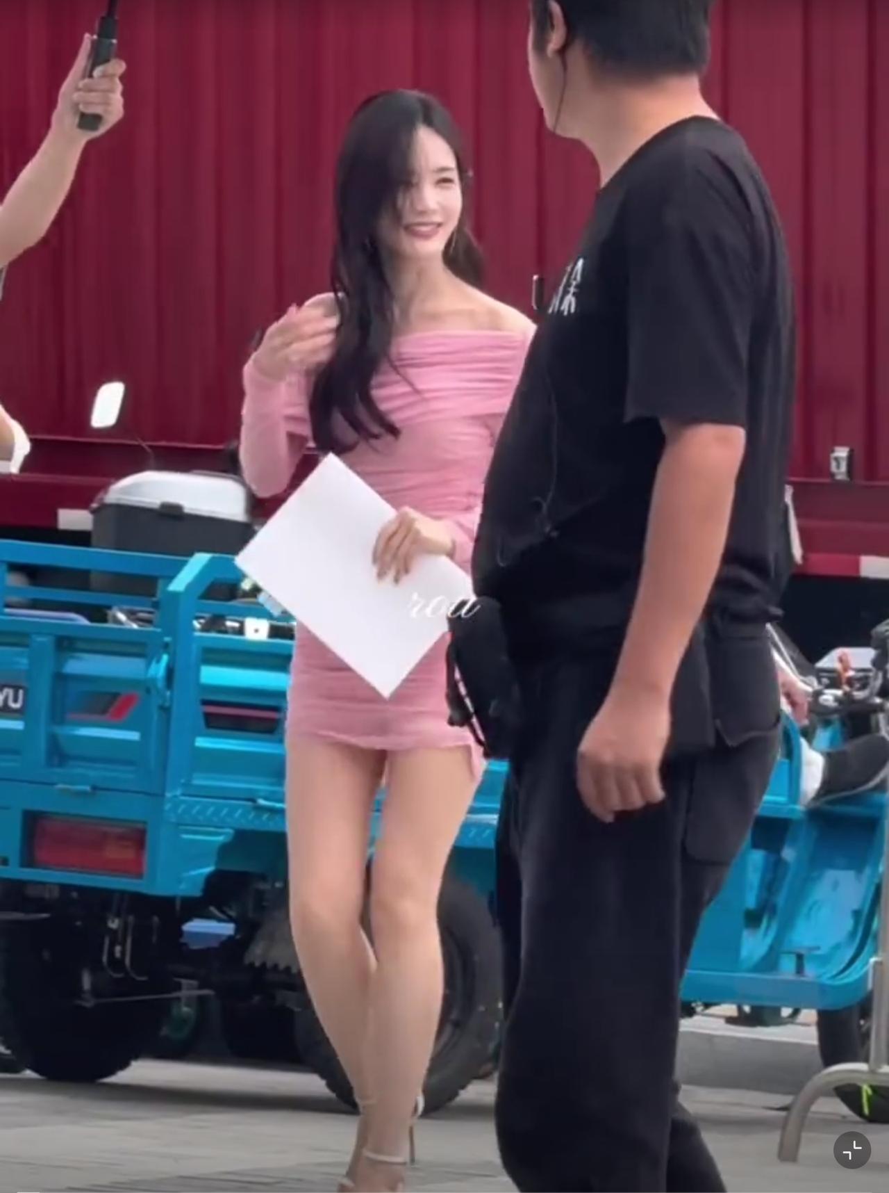 李一桐这裙子有点意思,看网友发了她路透的照片。 一件粉红色的包臀裙确实显得大腿长