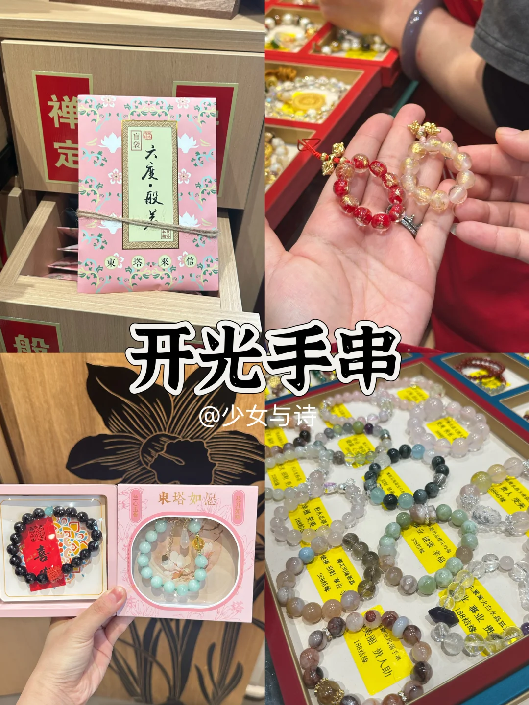 9️⃣开光手串:东塔文创店左半边售卖各种手链手串,有些是开过光的,带着美好的寓意,很多游客会购买,希望能给自己和家人带来福气和好运 ,价格因材质和款式有所不同。