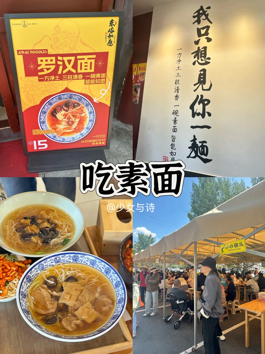 7️⃣吃素面:寺庙门口右手边是素面摊,15元一碗,还能免费续面,面的味道很不错,很多游客都会来上一碗,吃面的人较多,高峰期可能需要排队。