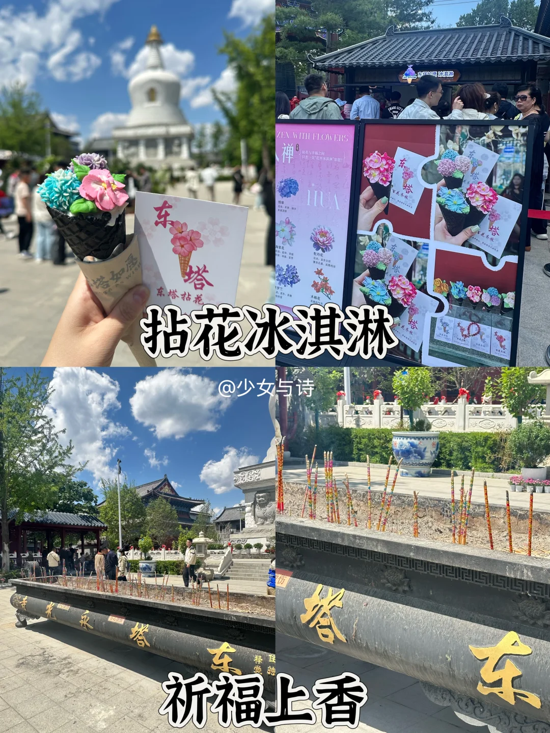 6️⃣拈花冰淇淋:东塔的拈花冰淇淋很受欢迎,外观精美,口味独特,是游玩过程中不错的解暑和拍照搭子,排队购买的游客很多,不要错过品尝的机会。