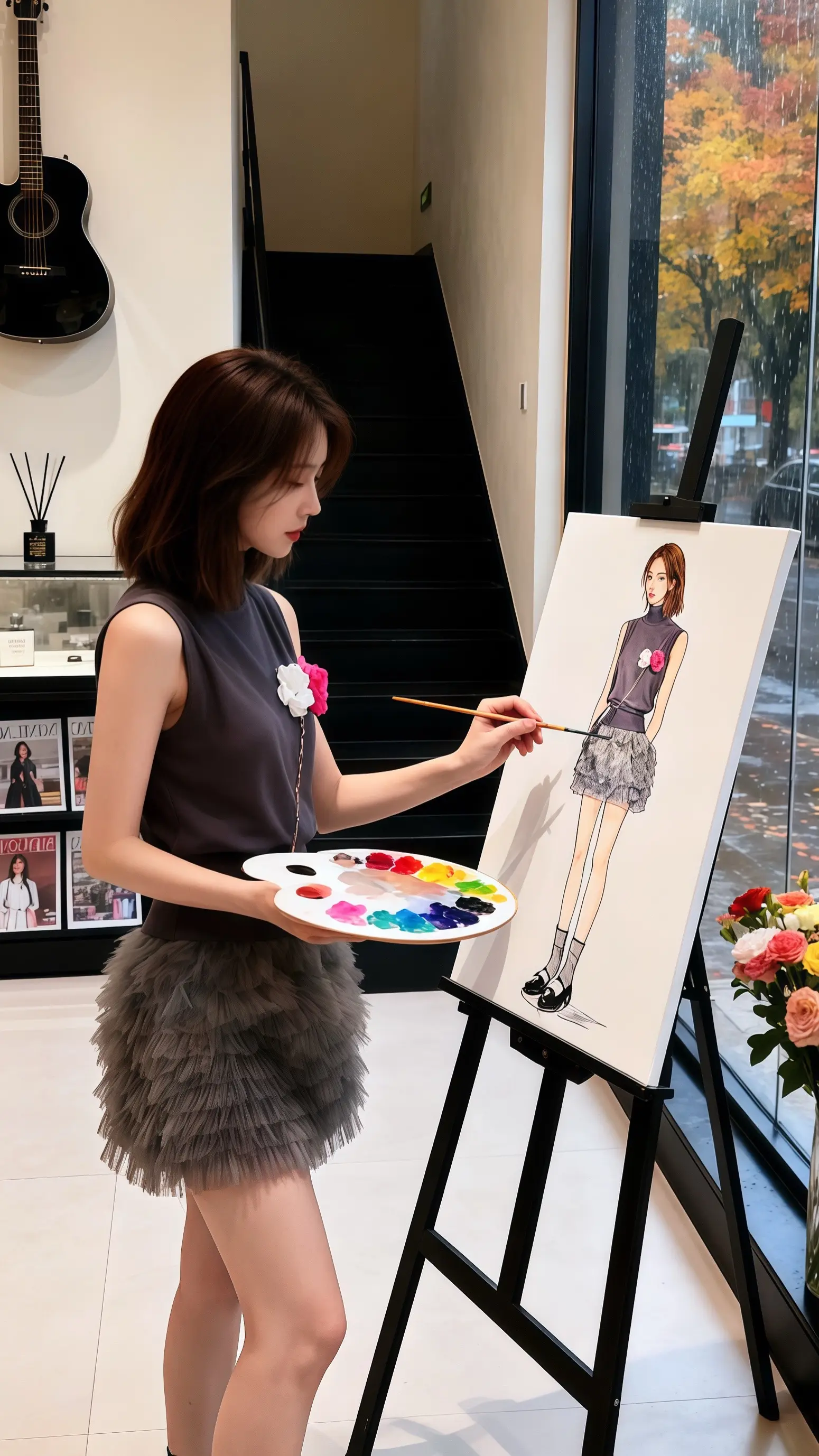雨天逛店,我被这套灰调无袖上衣+网纱蛋糕裙的搭配牢牢吸引。