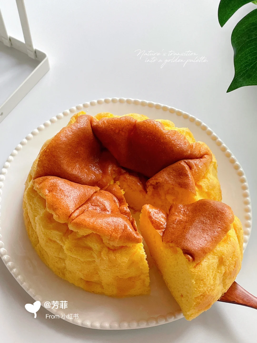 ♨️烘烤结束取出,晾凉会凹陷是正常的.🐾可以冷藏一下再吃,也可以直接撕掉周边油纸切块开吃