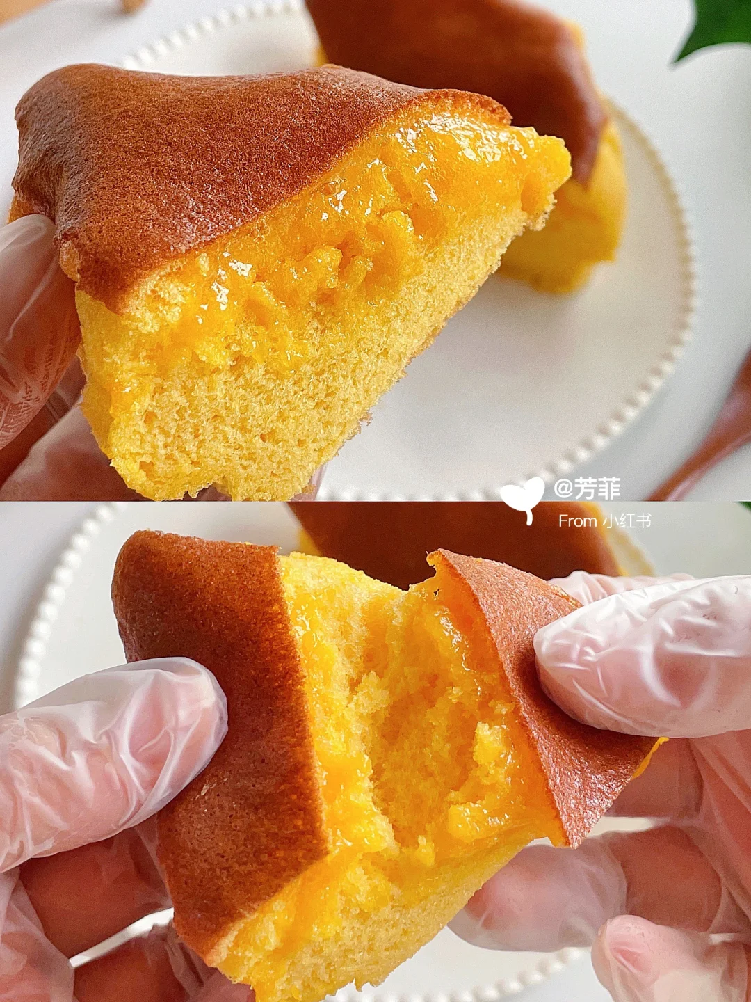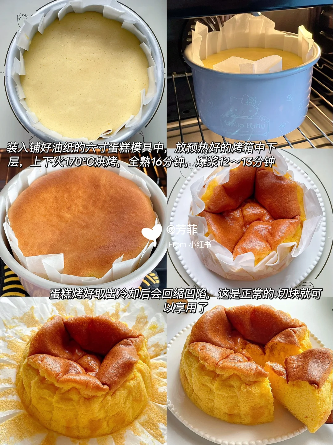 🌿🌿烘烤时间不同蛋糕状态也会不一样,半熟爆浆的蛋糕口感就比较嫩,加上流心冷藏后有点像乳酪蛋糕;👯个人比较喜欢全熟,给孩子吃不会黏[笑哭R]一样松软香甜。简单低成本快安排试试吧