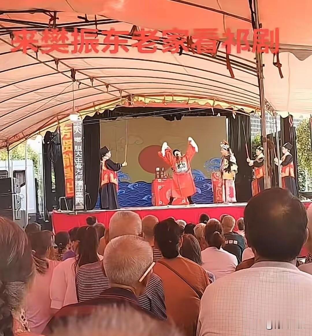 樊振东给老家捐款的祠堂, 终于竣工了! 风景真不错, 背面有山, 前面是池塘, 虽然不是很豪华, 搭眼一看就很舒服… 位置选的不错! 竣工的时候, 按照传统, 扎了台子, 正儿八经的请过来帮忙的乡亲们听大戏! 看来,东哥这一支很尊重传统文化!