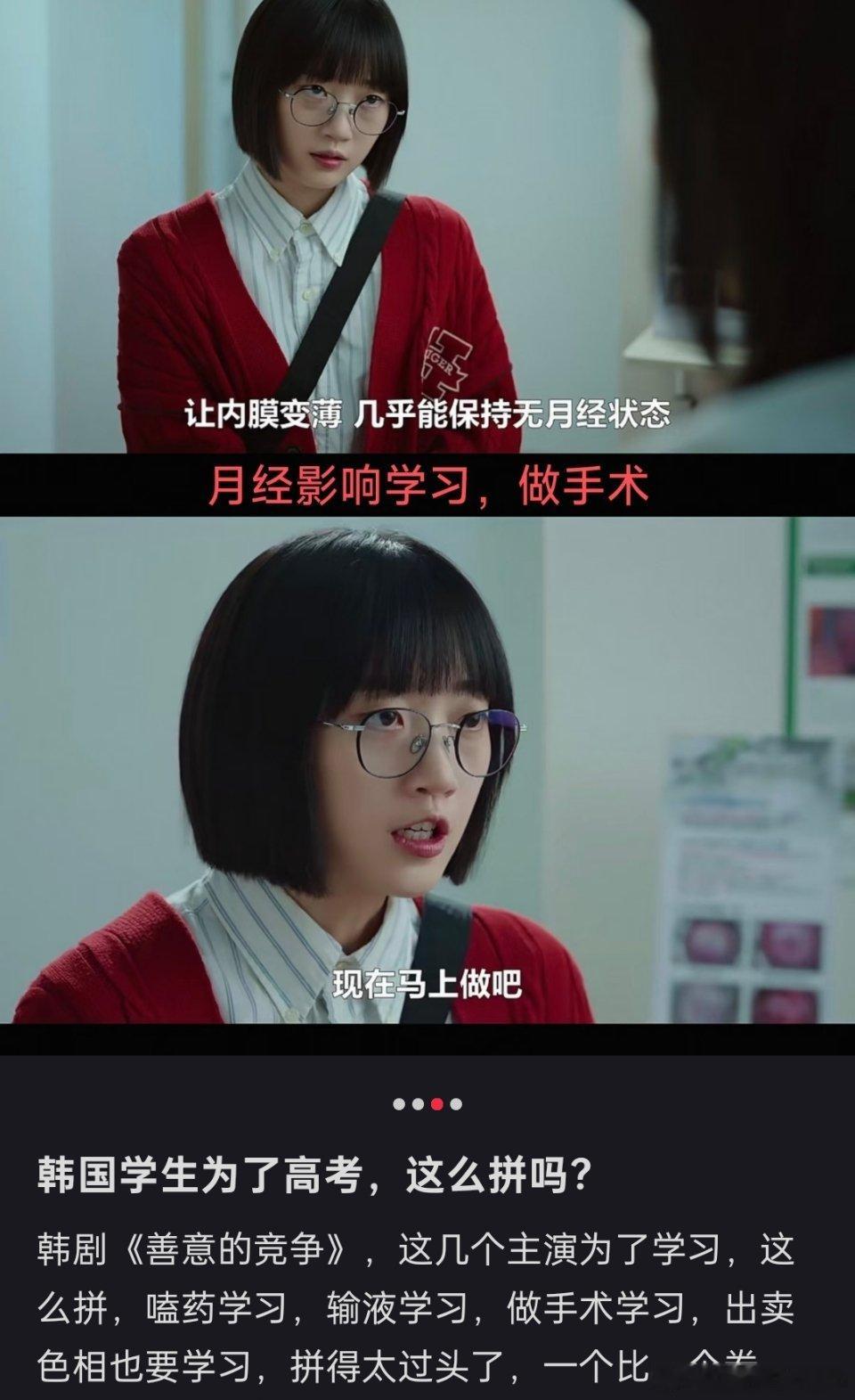 韩国高中生太累就扎针🔻有网友说,韩剧里的韩国高中生为了韩国高考,扎针输液学习。嗑药学习。月经影响学习,还要做手术?[哆啦A梦吃惊][哆啦A梦吃惊]