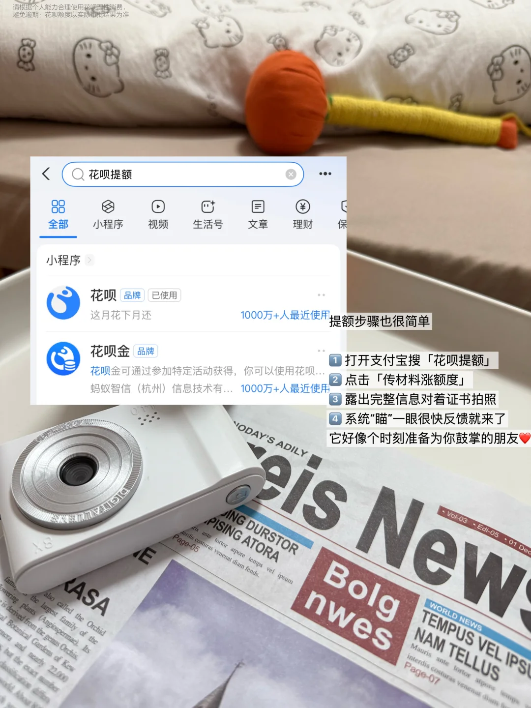 1️⃣ 打开支付宝搜「花呗提额」