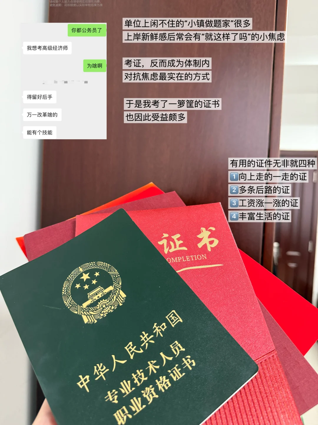 单位上像我这种闲不住的“小镇做题家”很多,上岸新鲜感过后,经常会有“啊?就这样了吗”的小焦虑。这时候,考证,反而成为对抗焦虑最实在的方式[吧唧R]