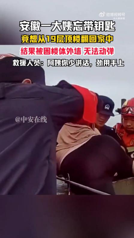 胆子真大!9月30日,安徽马鞍山,一大妈出门时忘记带钥匙,回来后想了个“馊主意”,从19楼顶楼翻窗回家。结果,大妈刚翻出去,就吓得不敢动弹了,僵持一段时间后,打电话报了警,最终被成功救了上来。网友:大妈不愧是大妈! 当天一大妈出门遛弯,出去的时候她的心情还不错,可当她回家准备开门时,一摸口袋才发现,钥匙根本没带,她站在门口,手忙脚乱地想了想。 就在这时,大妈灵光一闪,她记起自己家就在楼顶附近,于是心生一计:既然没钥匙,直接从天台下去不就行了?大妈没有一丝犹豫,快速走到楼顶,爬上栏杆,准备直接翻窗进去。 然而刚刚跳出窗外,大妈就彻底傻眼了,她站在楼外的墙壁上,低头一看,眼前的景象让她双腿直发抖,她从19楼往下看,心里瞬间涌上来一阵恐惧,那种失重感让她动弹不得,双腿犹如灌了铅似的,根本不敢再往下爬一步。 当时大妈几乎整个身体都贴在墙面上,脸色煞白,站在那里僵硬了好一会儿,连头都不敢回转。 一旁的风呼呼地吹,楼下的街道人来人往,却没人知道这位大妈正面临着怎样的危险,她试着让自己冷静下来,可每一次想要迈出一步,心里的恐惧就像沉重的枷锁,将她束缚得动弹不得。 焦急的思绪过后,大妈终于意识到,自己不仅走不下去,甚至连回到窗口的位置都无法做到,她想要翻回去,但无论如何都做不到,她的身体被困在外面,既上不去也下不来,那一刻,大妈彻底感到无助,害怕、尴尬、无奈,最终她无奈的拨打了报警电话。 “喂,警察叔叔,我……我从天台翻出去啦,现在回不去了!”电话那头的民警听到这一信息后立刻反应过来,迅速调派救援人员赶到现场。 很快几名消防员穿着救援装备赶到了大妈所在的高楼下,当时事态非常紧急,消防员们通过楼内的窗户与大妈取得联系,尽量稳住她的情绪,缓解她的恐惧,他们迅速准备好安全绳,并开始进行紧急救援。 现场的气氛紧张而又充满着一种无声的默契,救援人员小心翼翼地操作着,一边安抚大妈的情绪,一边确保每个步骤都尽可能安全,大妈在被消防员帮助下,一点点被拉回了窗内,最后经过一番努力,消防员们终于将大妈顺利拽了上来。 当大妈安全脱险后,脸上满是惭愧和感激,她连声道谢,言语中也有些许后怕,显然,刚才那段经历,让她意识到自己那一时的冲动,几乎带来了不可挽回的后果。 这件事情虽然带有一些戏剧性,但也让人深思,大妈因为疏忽大意忘带钥匙,却通过这么一番极端的方式解决问题,最后差点儿酿成大祸。 这一事件不仅仅是个搞笑的“惊险故事”,也给了我们很多值得反思的地方,老年人的记忆力衰退,带来的不只是日常生活的困扰,甚至可能引发安全隐患。 而对于很多人来说,不论年龄大小,随时保持冷静,做事三思而后行,才是最重要的。 这件事不仅展示了老年人忘带钥匙的无奈,也提醒我们每个人在面对困难时,不能被一时的情绪和灵光一现所左右,稍不留神,后果可能是我们无法承受的。 对于这件事情,大家有什么看法? 信息来源:《因忘带钥匙 大妈19层顶楼翻窗回家被困险坠楼》大象新闻