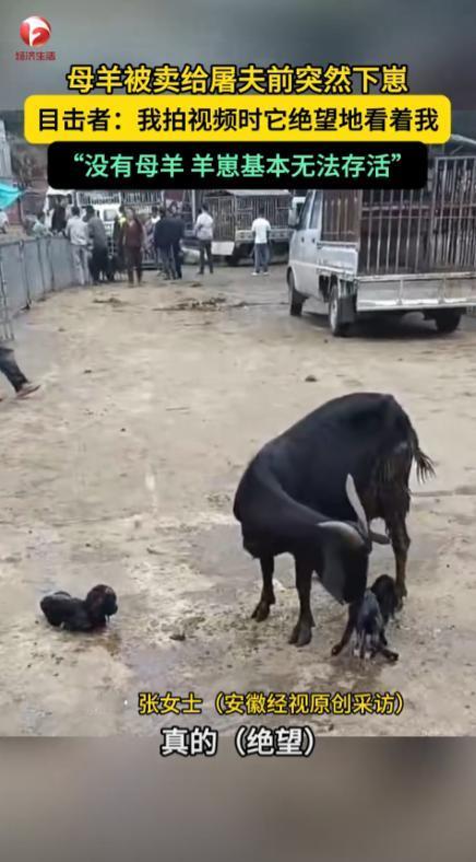 “万物皆有灵!”近日,贵州毕节,一女子拉着羊到市场上卖,刚卖给屠夫,其中一只母羊突然产下2只羊羔,随后一脸绝望的望着女子,由于没有母羊小羊也活不了,所以女子也无法收留小羊,全都留给了屠夫。网友:不应该不卖了吗? 当时事情发生在一个普通的集市上,张女士拉着几只家养的羊前往市场打算卖掉,她与屠夫谈好价格,准备交易,然而命运似乎开了个小玩笑,张女士刚准备交易时,其中一只母羊突然临盆,顺利地生下了两只小羊羔。 这突如其来的变化,让张女士一时无言,她甚至掏出手机拍了视频,记录下这一瞬间的“奇遇”,不过随着时间的推移,张女士慢慢意识到问题的严重性,母羊已经没有了照料小羊的能力。 而这些小羊要想活下去,必须依赖母羊,看着那只母羊的眼神中流露出的无助与焦虑,张女士的心情愈发沉重。 然而现实总是如此残酷,因为没有足够的时间和条件去照料这些刚出生的小羊,张女士最终决定,将这三只羊留给了屠夫,她无奈地转身离开,心里没有一丝轻松,甚至可能还有些许愧疚。 在这一事件发生之后,网络上掀起了热议,一些网友表示,这只母羊表现出了“灵性”,似乎在请求主人不要卖掉她和她的孩子。 然而现实的无情让张女士的选择显得更加复杂,毕竟卖羊的钱是她的生计来源,而如果不卖羊,家里可能就没有收入来源,对于一个依赖羊群维持生计的普通家庭来说,无法留下这些小羊似乎是无法避免的选择。 然而有的网友则提出了不同的看法,他们认为,如果张女士能够再考虑一下,或许能够在小羊稍微长大后,再将母羊卖掉,这样不仅可以给小羊留出成长的机会,还能通过再销售母羊赚取更多的钱,毕竟养羊不只是眼前的交易,还要考虑到长期的收益。 这个事件其实是一个很典型的农民生活的缩影:他们在面临着生死存亡的困境时,不得不做出许多艰难的抉择。 每个决定背后都有深深的无奈与心酸,张女士的选择或许是对生存的一种妥协,然而这其中带来的痛苦和无力感,却难以言喻。 这让人不禁想到,人在生活中面对类似的困境时,又该如何抉择呢?有时候情感和理智的冲突是如此尖锐,常常让我们陷入两难,是否要为眼前的利益放弃眼前的情感?这是一道无法回避的命题。 当然,这件事或许我们无法直接与动物沟通,但它们的行为和眼神,常常会让人产生一种“情感共鸣”,然而生活往往是现实和理想的冲突,动物的“灵性”也难以抵挡生存的压力。 这件事也引发了人们对于农民生活的关注,张女士的选择,既是一种无奈的生存方式,也是一种迫于生活压力的选择,如今在一些偏远地区,农民生活依然艰难,他们不仅要面对自然环境的挑战,还要承受市场的压力。 像张女士这样的人,在生活的重压下,常常不得不做出无情的决策,虽然她无奈地将母羊和小羊留给了屠夫,但她内心的挣扎与痛苦,我们可以感同身受。 从另一个角度来看,这也让我们更加反思如何改善农民的生活状况,如何让他们在不牺牲动物生命的情况下,能够维持生计,这不仅仅是对人类情感的关注,更是对整个社会生存方式的一种审视。 综上所述,这个事件不仅仅是一个简单的市场交易,它折射出了许多深层次的问题,从经济的角度来看,张女士的选择可能是明智的。 但从情感和道德的角度来看,却让人不禁产生疑问,我们应该如何平衡生存与情感的矛盾?或许在追求物质利益的同时,也需要更多的关注那些无声的生命,让他们在我们的选择中不再感到无助。 对于这件事情,大家有什么看法? 信息来源:《母羊被卖给屠夫前突然下崽。视频拍摄者张女士说,母羊和她对视时,一脸绝望。拍完视频后,自己就离开了,对于母羊和羊崽的最后归处,她也不清楚。》AHTV第一时间