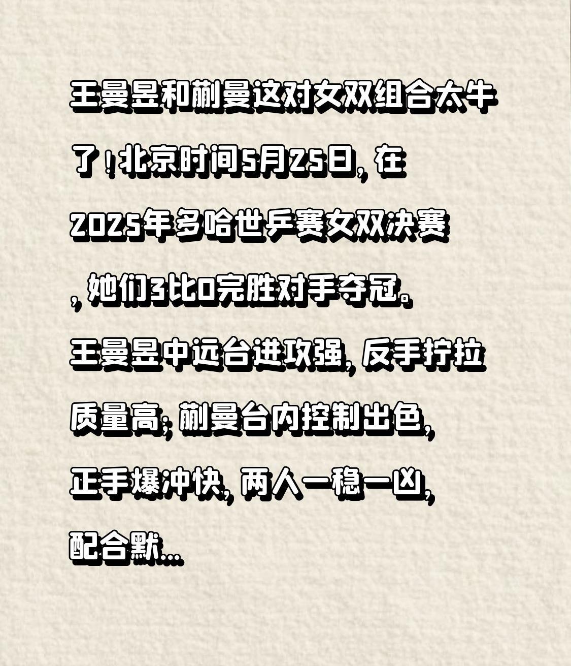 王曼昱和蒯曼这对女双组合太牛了! 北京时间5月25日,在2025年多哈世乒赛女双