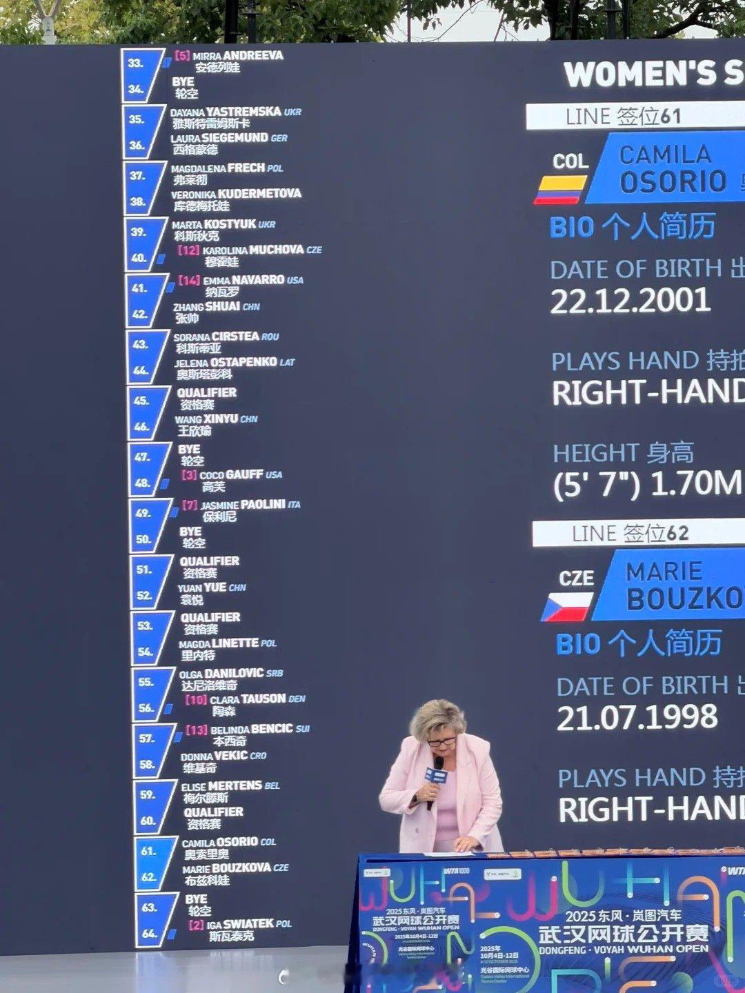 网球talking大会 2025武网 武汉签表已出,王欣瑜领衔4名中国球员参赛,四位中国选手首轮对手如下: