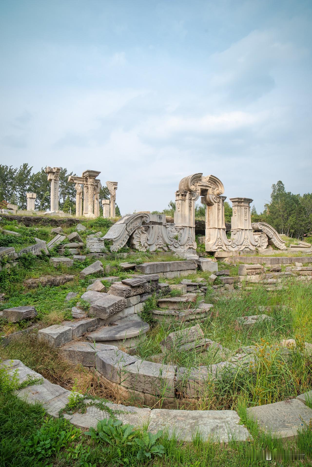 西洋楼遗址和大水法遗址是圆明园遗址公园的核心看点,位于长春园北部。 西洋楼始建于1747年,由西洋传教士设计、中国匠师建造,是我国大规模仿建欧式园林的尝试,融合法国“勒诺特”、意大利“巴洛克”风格与中国元素,包含谐奇趣、黄花阵、海晏堂、大水法等十余座西式建筑。 大水法是西洋楼最大喷泉,1759年前后建成,主建筑为石龛式,有“七级瀑布”“猎狗逐鹿”等喷水景观,两侧还有十三级喷水塔,曾是园内壮观的水景。 1860年,英法联军入侵时,两处遗址均遭严重破坏,如今仅存残垣断壁,却成为近代历史的重要见证,静静诉说着昔日辉煌与沧桑。