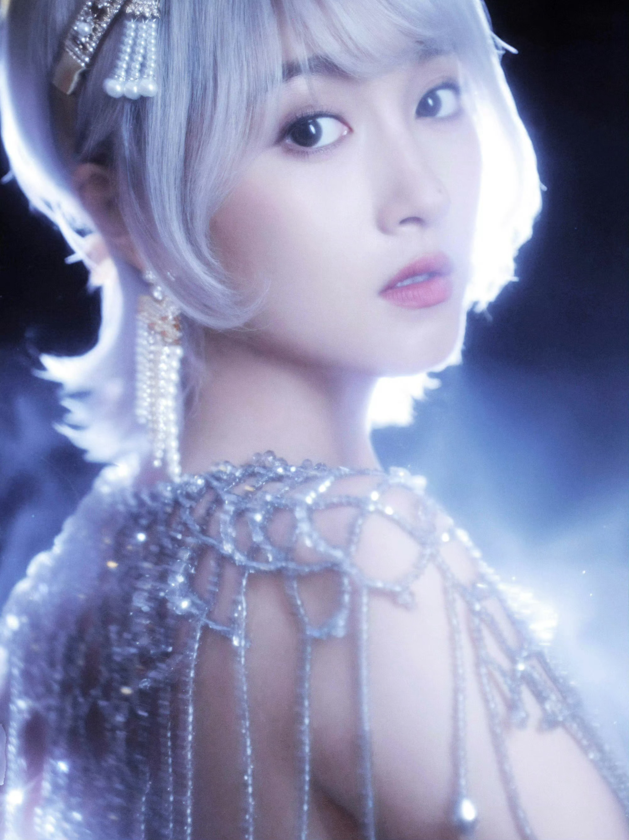 关晓彤 银色发丝珍珠点缀,钻石环绕裙身,梦幻,从光而来。摄影:刘健安