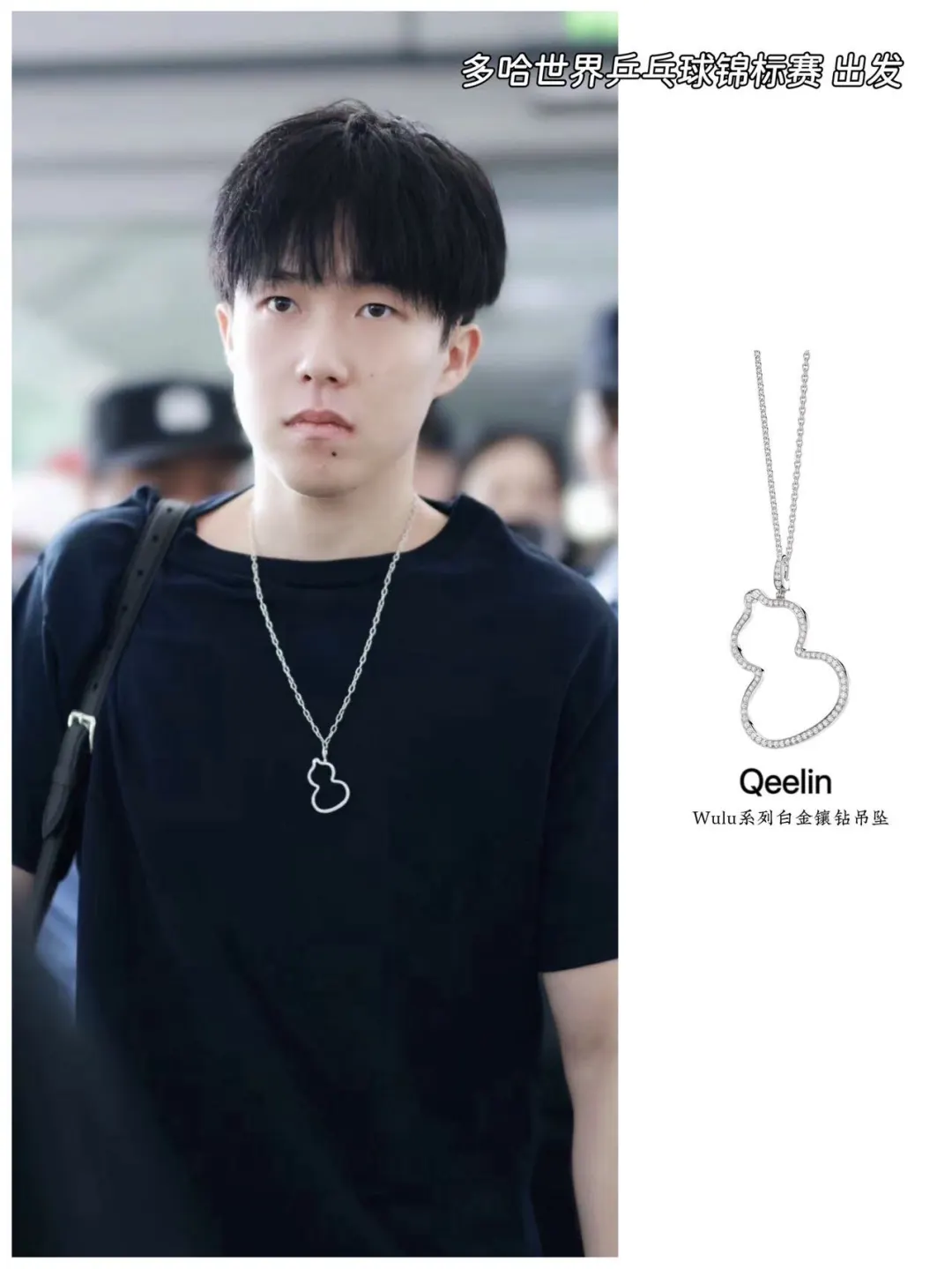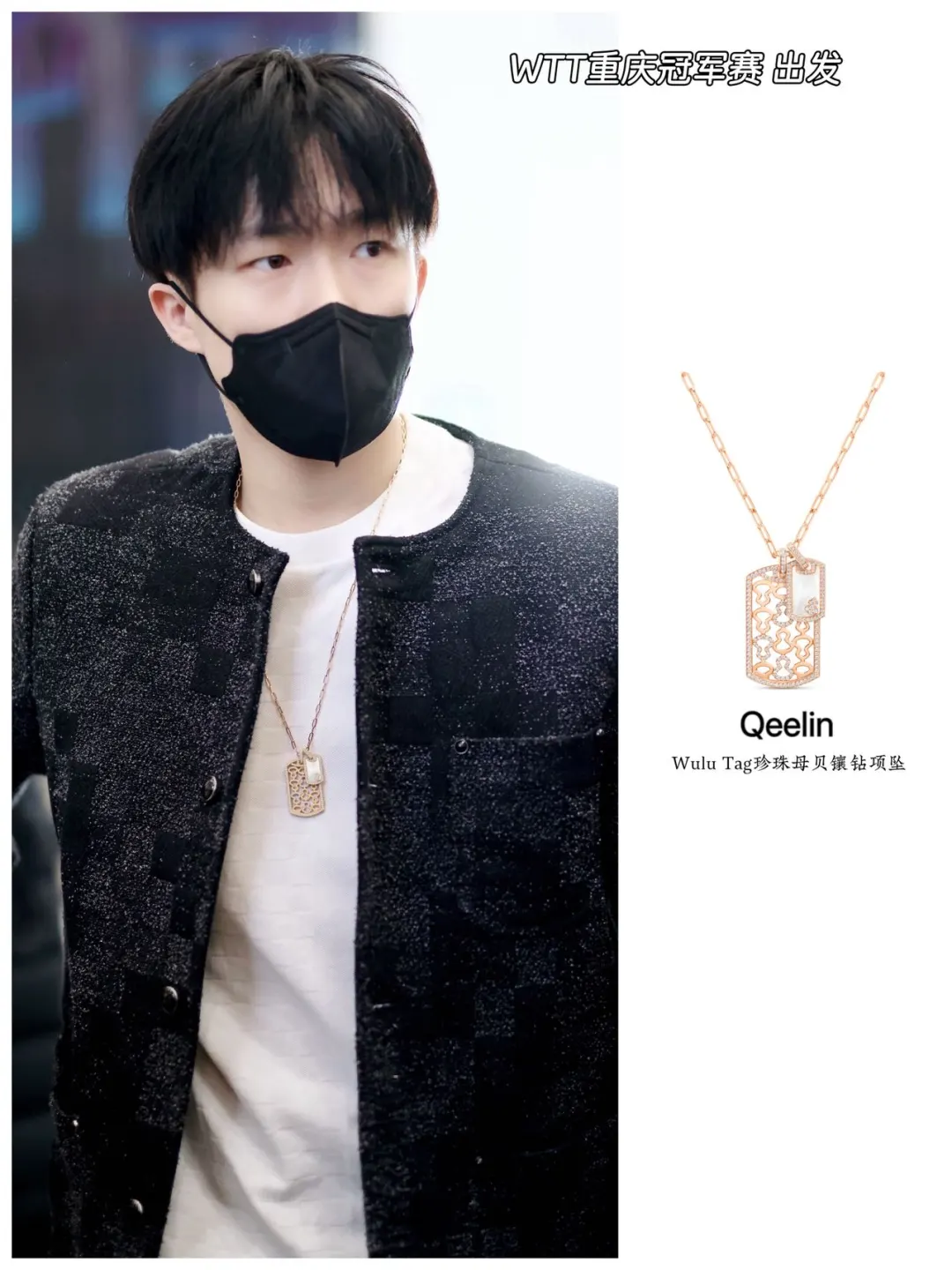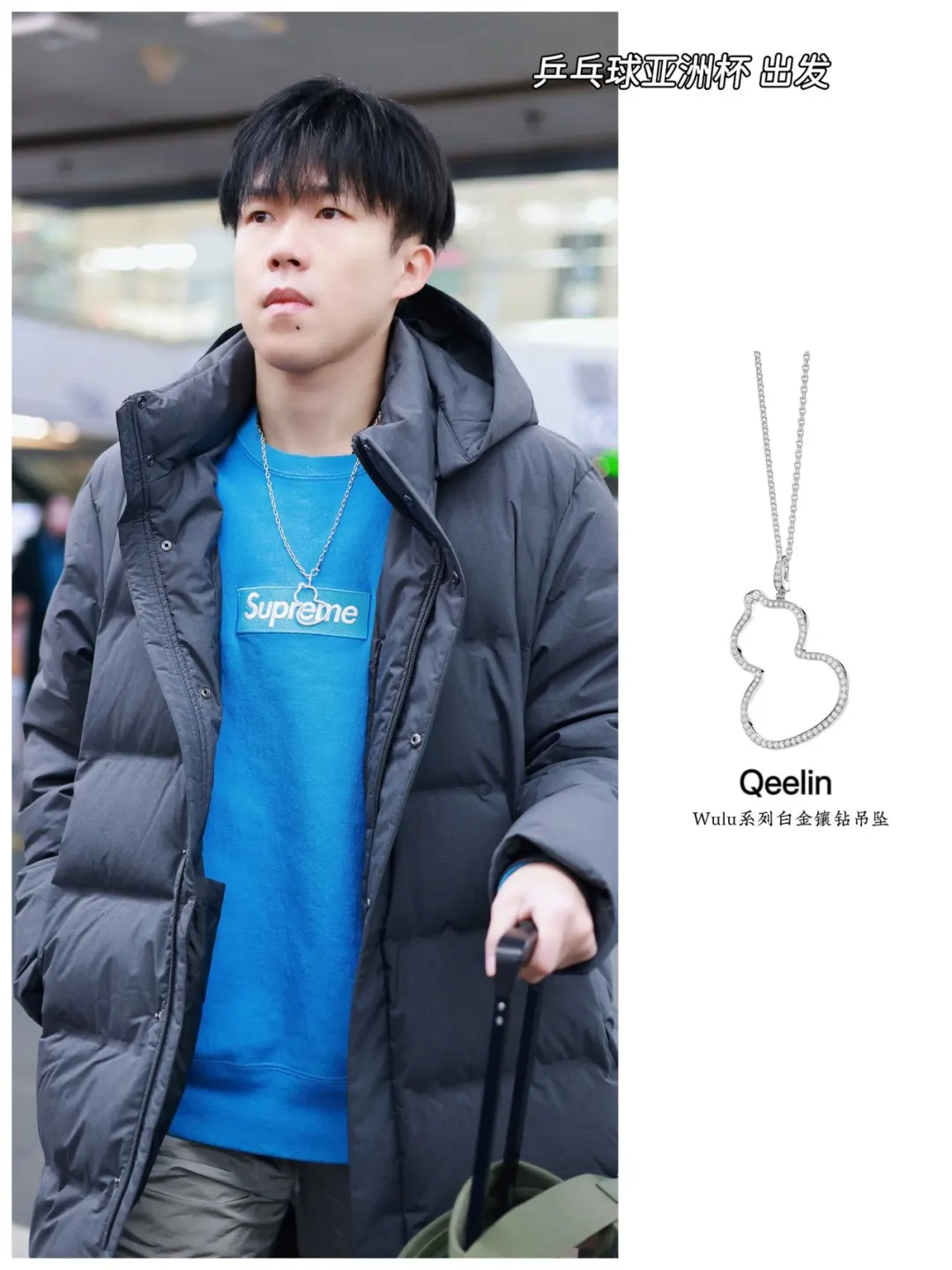 Qeelin的葫芦项链、手链也是相当有排面了,在两枚金牌中间牢牢占据C位!你还别说,是有一些玄学在里面的🥰——王楚钦三次机场出发(多哈世乒赛、WTT重庆冠军赛、亚洲杯)佩戴Wulu都夺冠了!!难怪粉丝希望焊在脖子上了[偷笑R]。