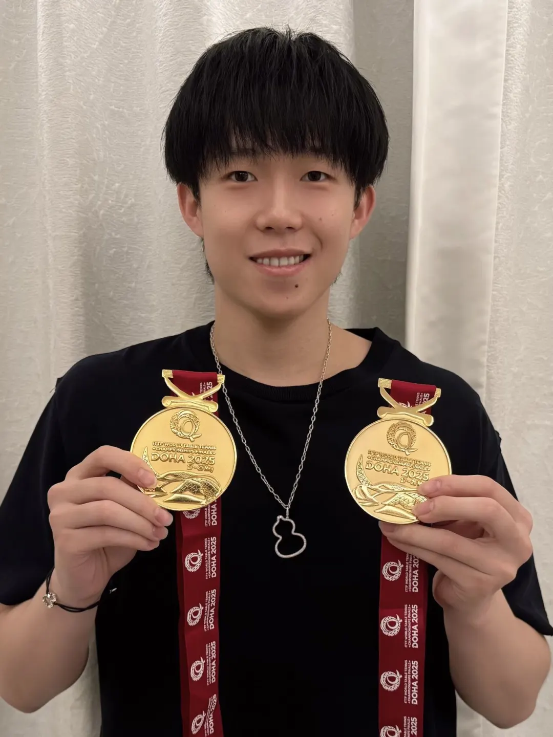 下午王楚钦也笑着晒出男单、混双两枚金牌,发文感谢了国家、教练,还有他的搭档莎莎~