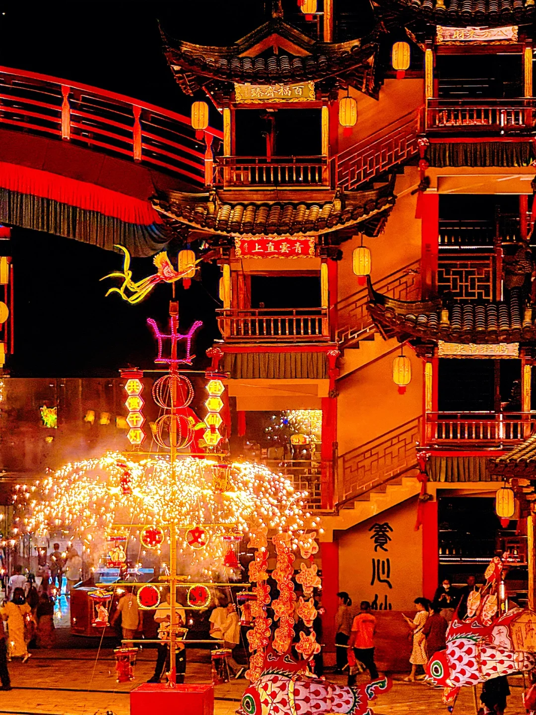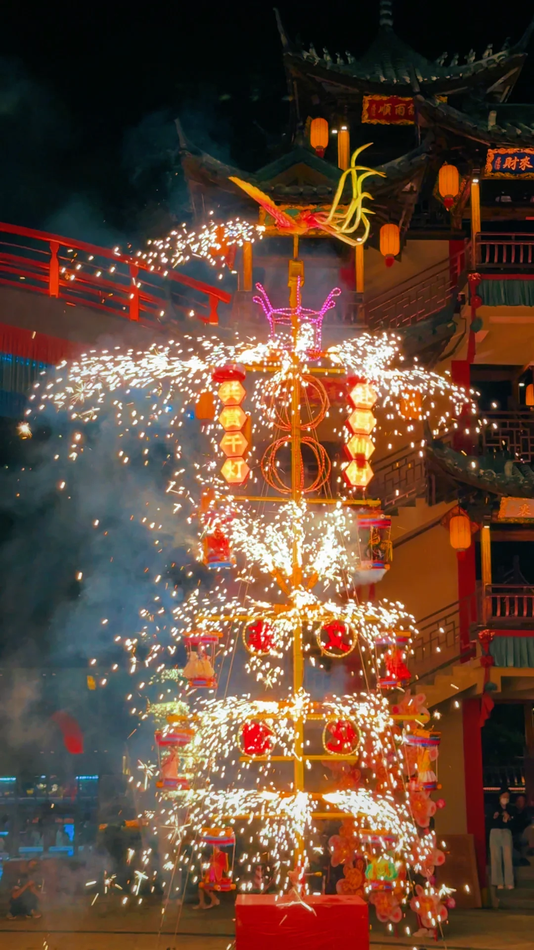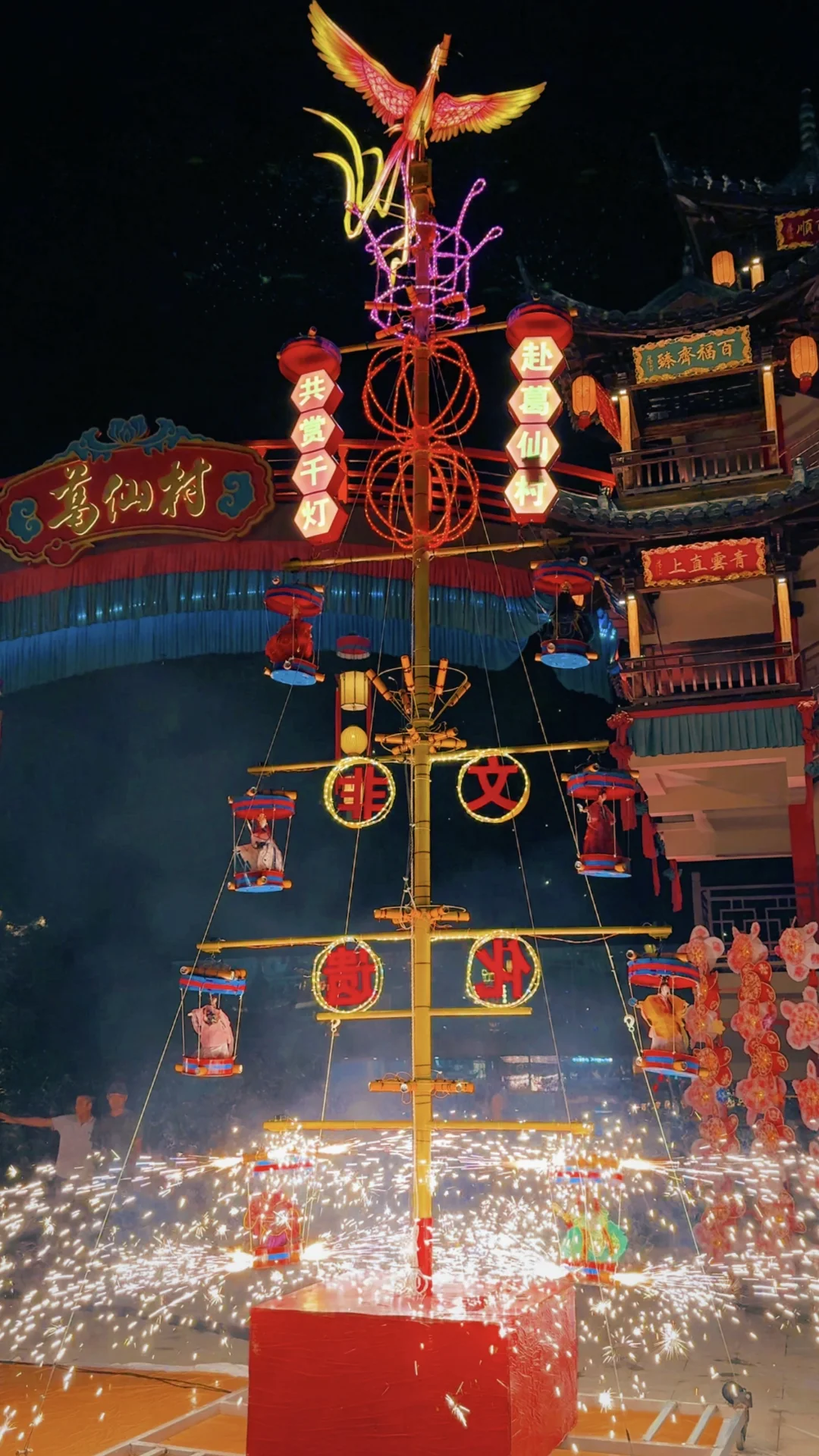 药发木偶:藏海传同款!15米竹竿烟花腾空,木偶随火光翻转跳跃(星辰广场夜演),千年技艺震撼到失语!
