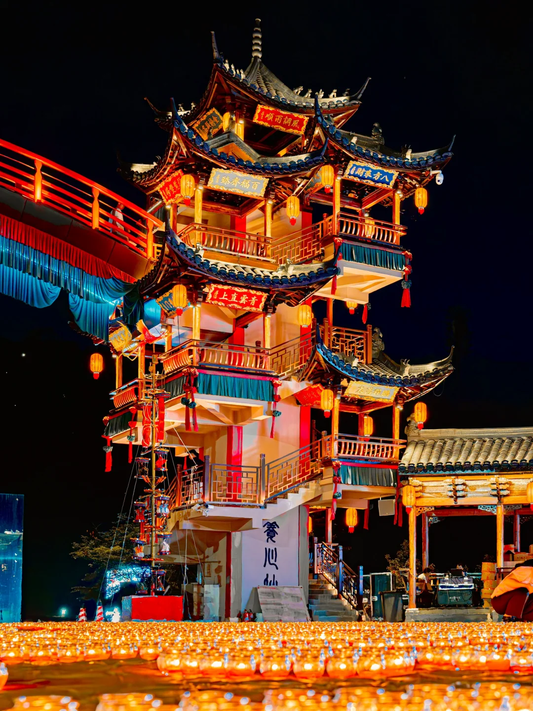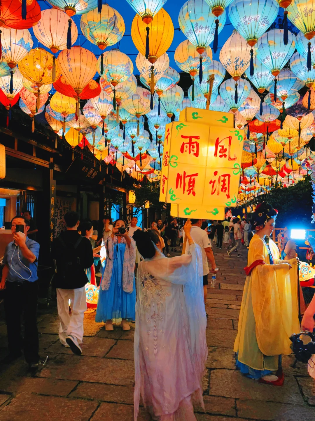百盏非遗灯笼点亮青石巷,竹骨油纸灯、木雕宫灯如星河倾泻!跟随队伍提灯巡游,一秒梦回《上元灯彩图》里的盛世!