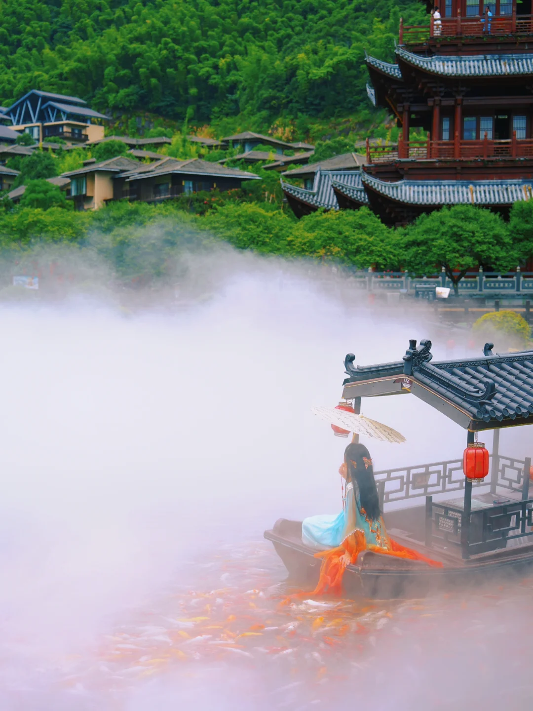 登顶俯瞰全景,湖中泛舟喂锦鲤,烟雾缭绕如仙境~
