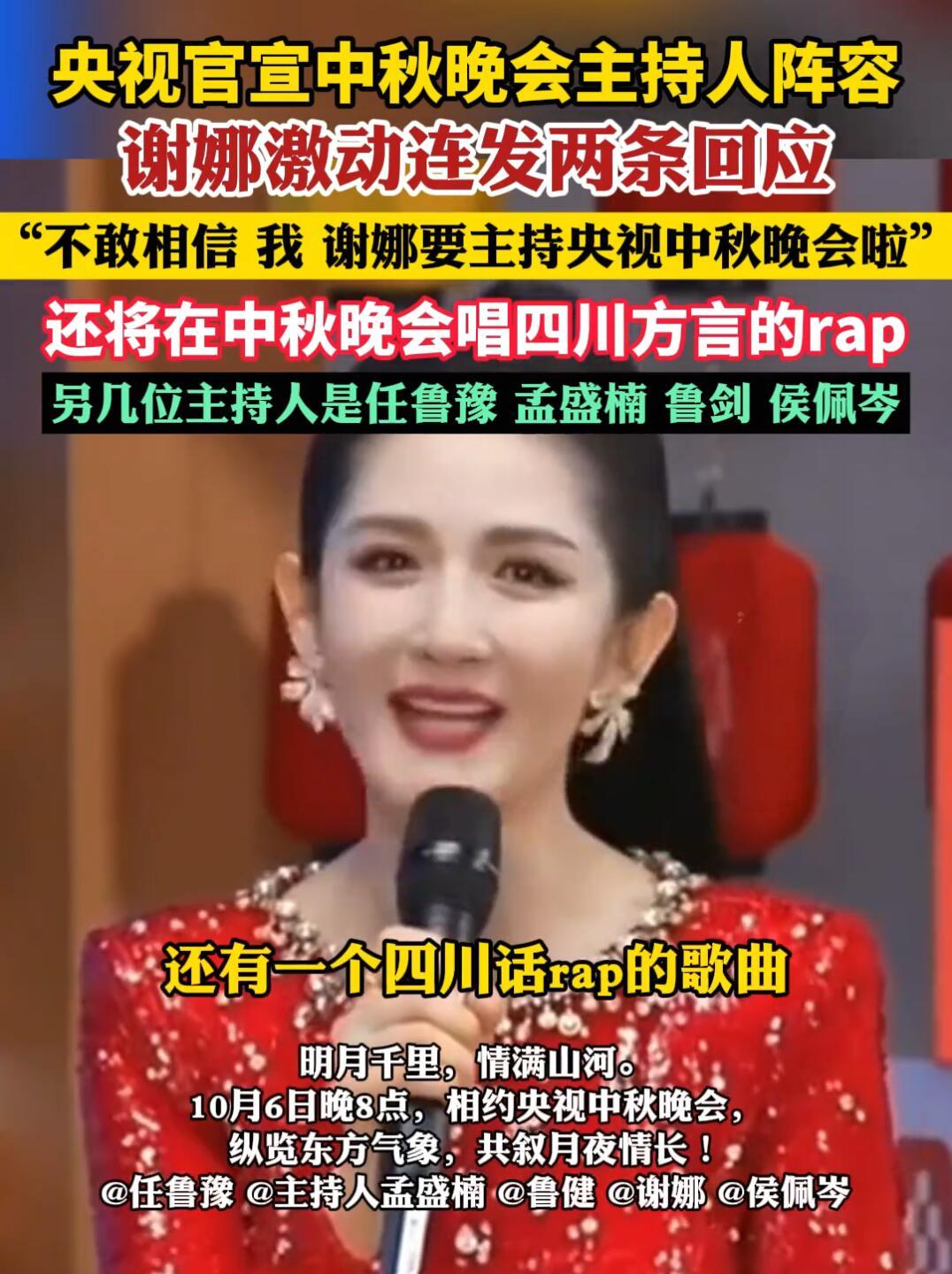 谢娜要上央视中秋晚会的消息一出来,直接冲上热搜!这次央视公布的阵容里,除了任鲁豫