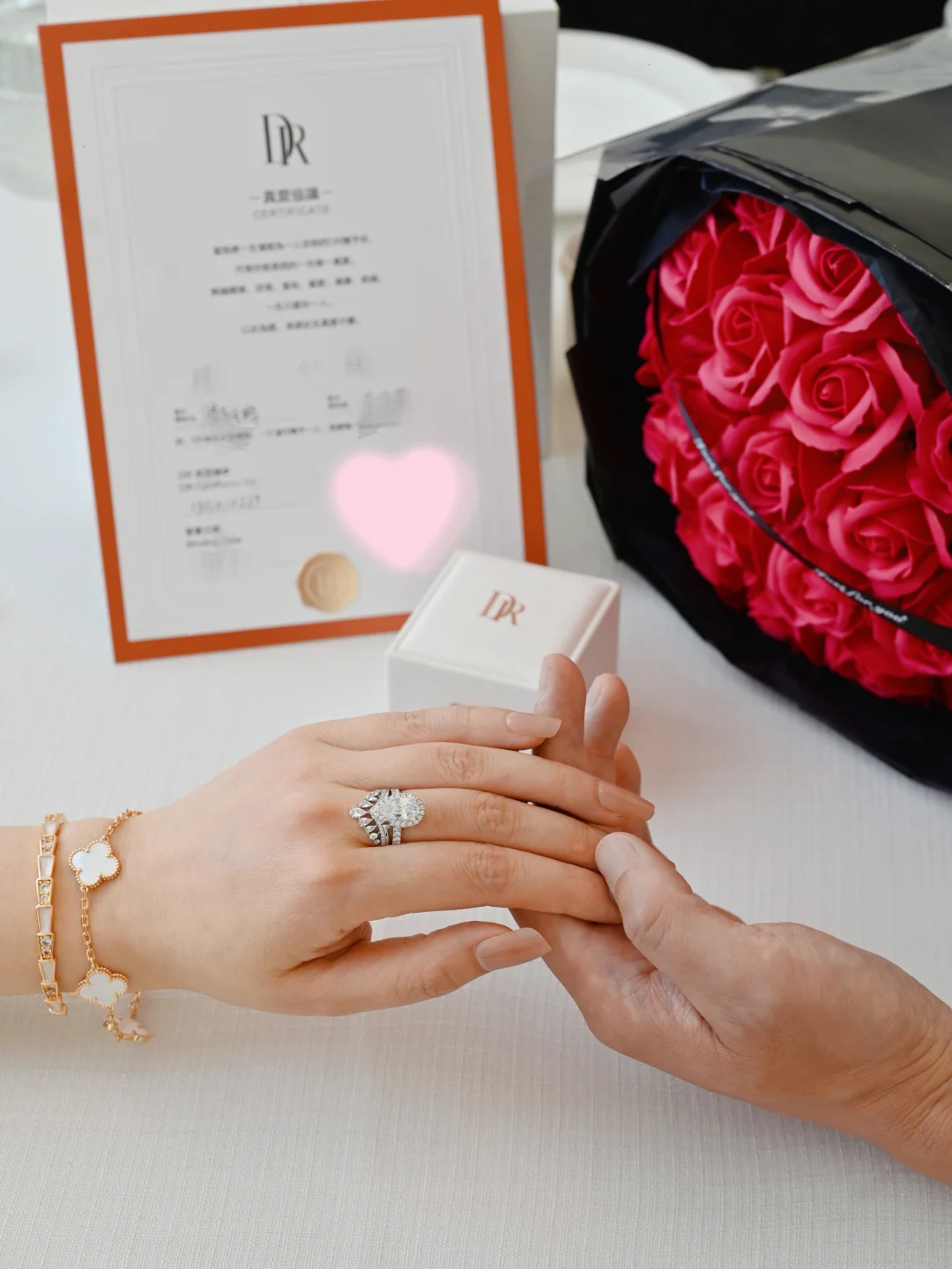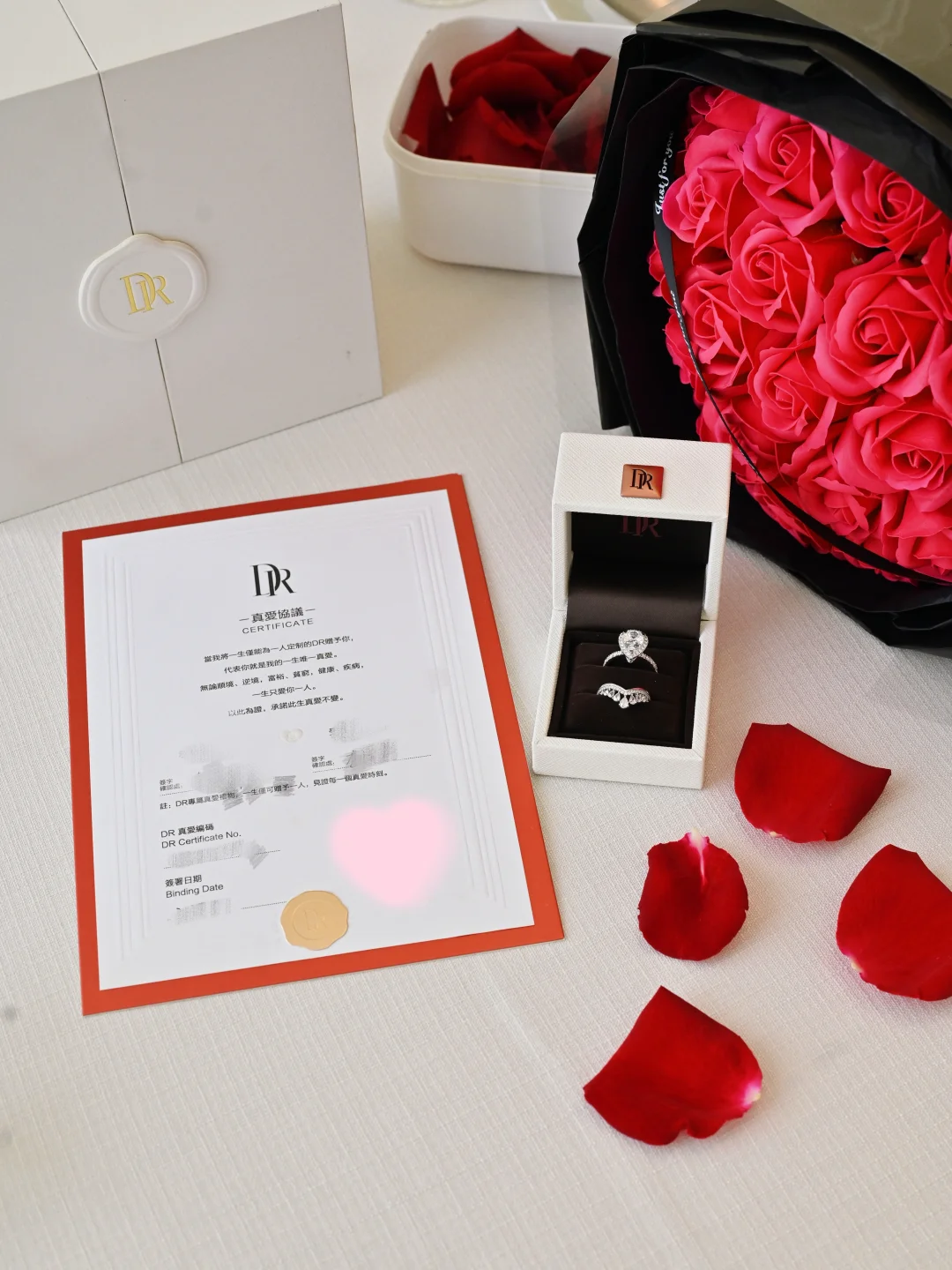 今天老公突然定了餐厅要带我去吃大餐,这两年家里琐碎的事太多,我居然忘了是订婚纪念日,他偷偷为我准备了DR钻戒,这已经是他第三次送DR给我,每一年都给我送一次,是他给我的独属浪漫。
