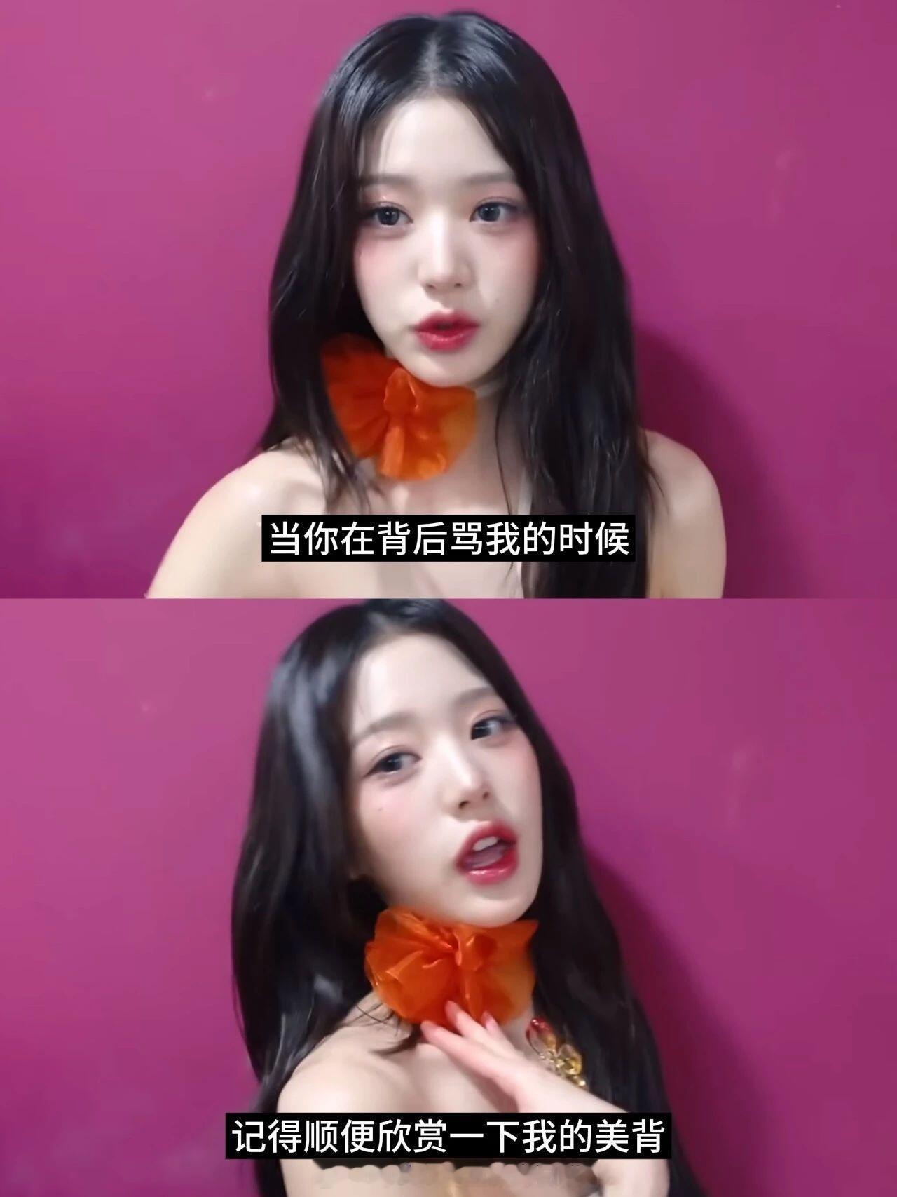 张元英人生梗图 “在我背后说我坏话的时候 记得顺便欣赏一下我的美背”hhhh好适配. 配文是天才吧