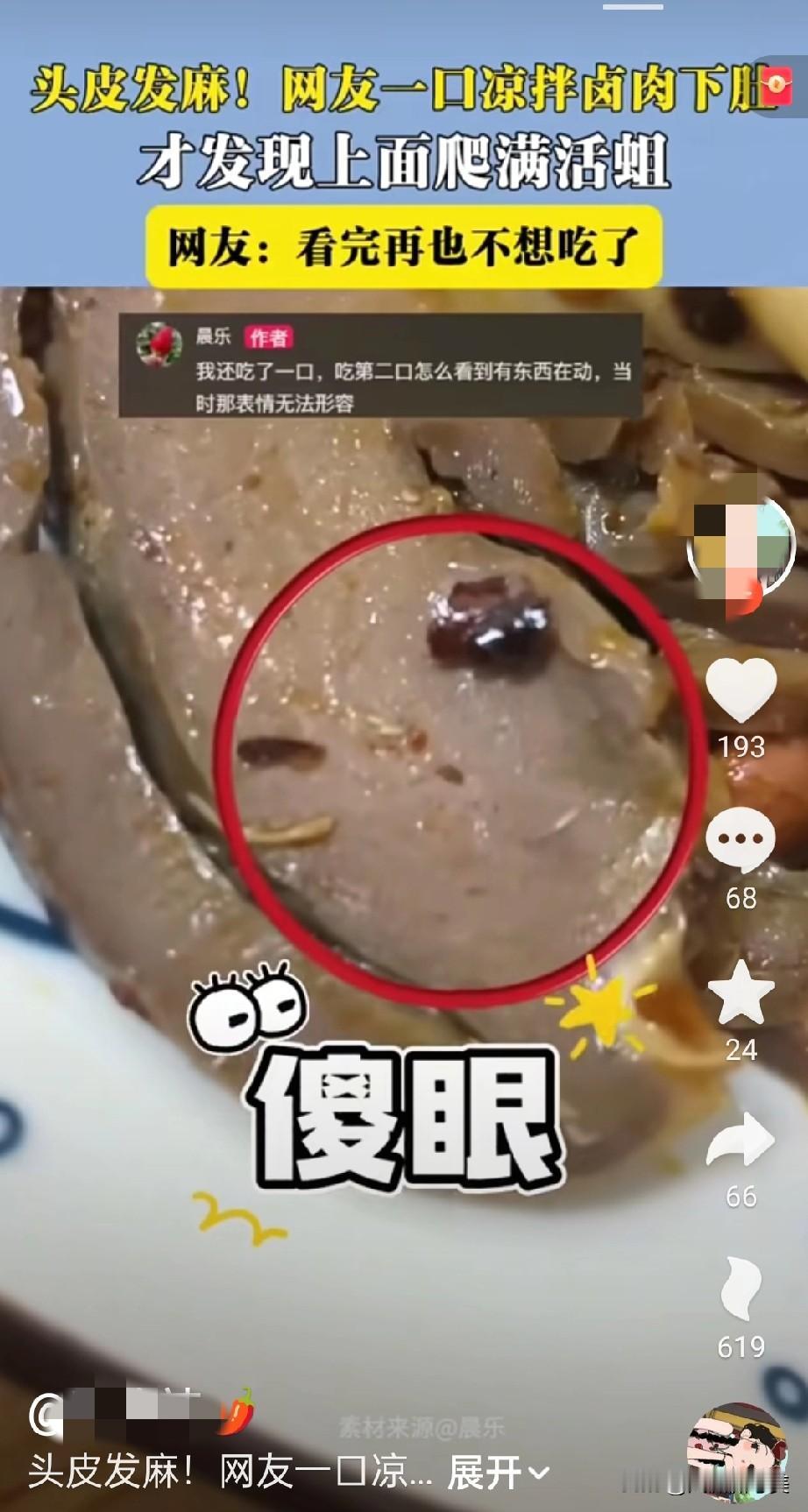 破大防了!一位网友爆料自己在凉菜摊买的凉拌卤肉,刚吃完第一口发觉不对劲,定睛一看,天呐!恶心吐了,上面竟然有活的蛆虫在爬! 评论区像开了锅,有网友调侃,眼一闭,嘴一张,吃就是了!还有网友说,这也是纯纯的高蛋白食品啊! 但打趣归打趣,夏天买路边摊的凉菜还是要慎重!马路边尘土飞扬,天气又热,当天卖不掉的小摊贩肯定舍不得倒掉,第二天接着卖,招虫子很正常了!不出问题那才怪呢! 条友们,你还敢买路边摊的凉菜吗?卤肉 卤味凉菜 五香熟食卤肉 凉拌熟食 熟食凉拌菜 凉拌卤肉熟食店 凉拌菜熟食卤味