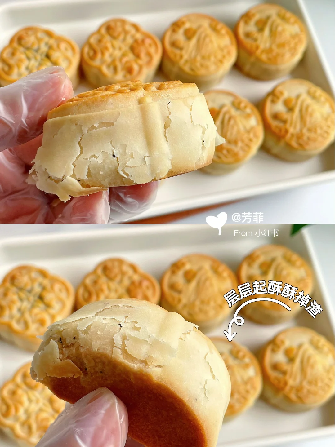 🌈出炉色泽金黄香气扑鼻,酥香酥香的甚是好吃!有点像老式酥皮月饼,又带点广式的酥软,不会噎人不怕腻嘎嘎好吃.喜欢的快试试吧