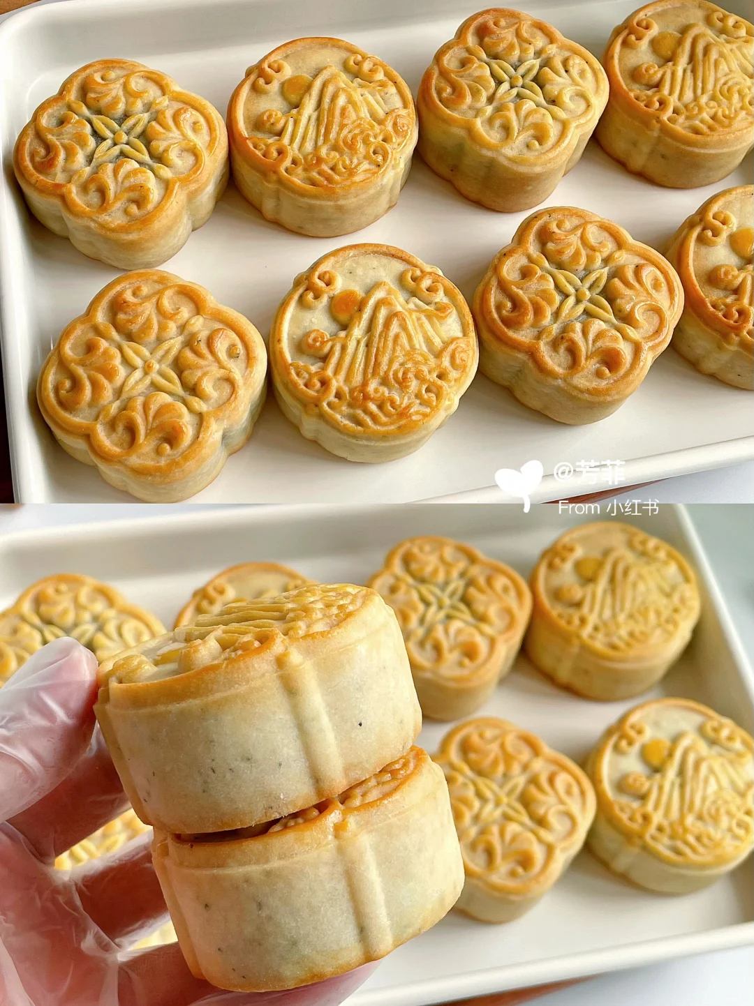 💫💫吃过就会爱上的琼式月饼,同时拥有酥皮和广式两种口感;👯饼皮加了点伯爵红茶,搭配自己炒的玫瑰豆沙馅,一口下去酥掉渣🌸花香茶香好吃还不怕腻!老少皆宜全家人都爱