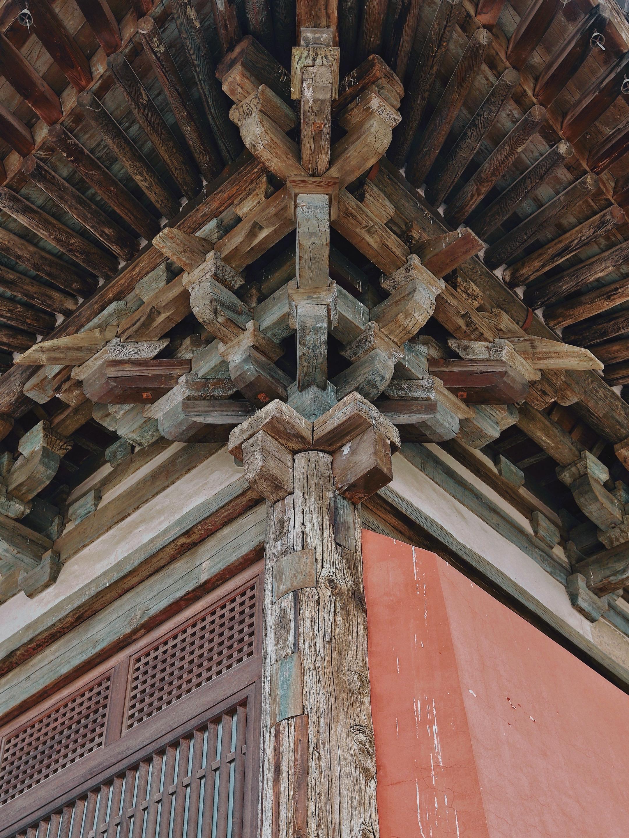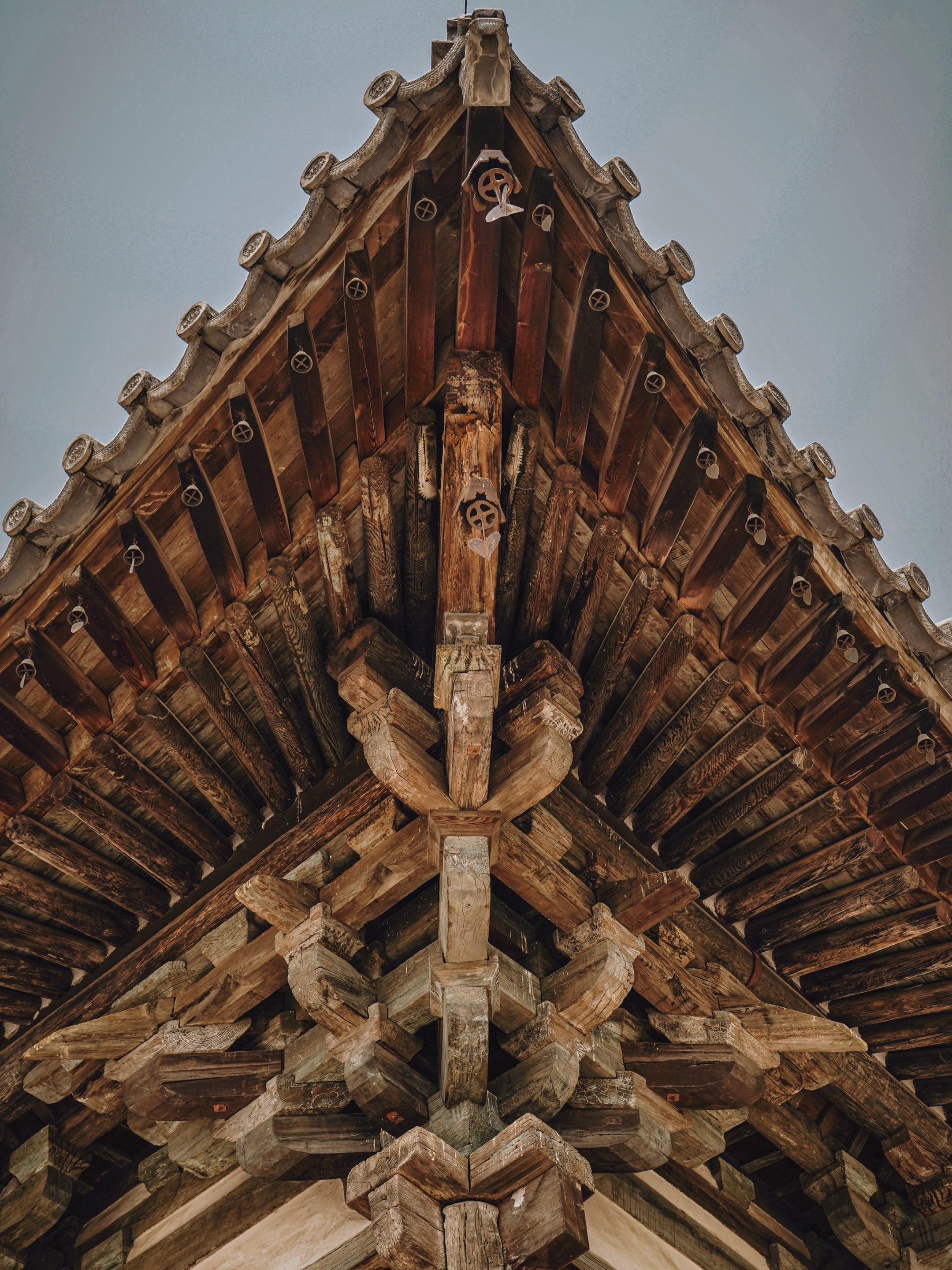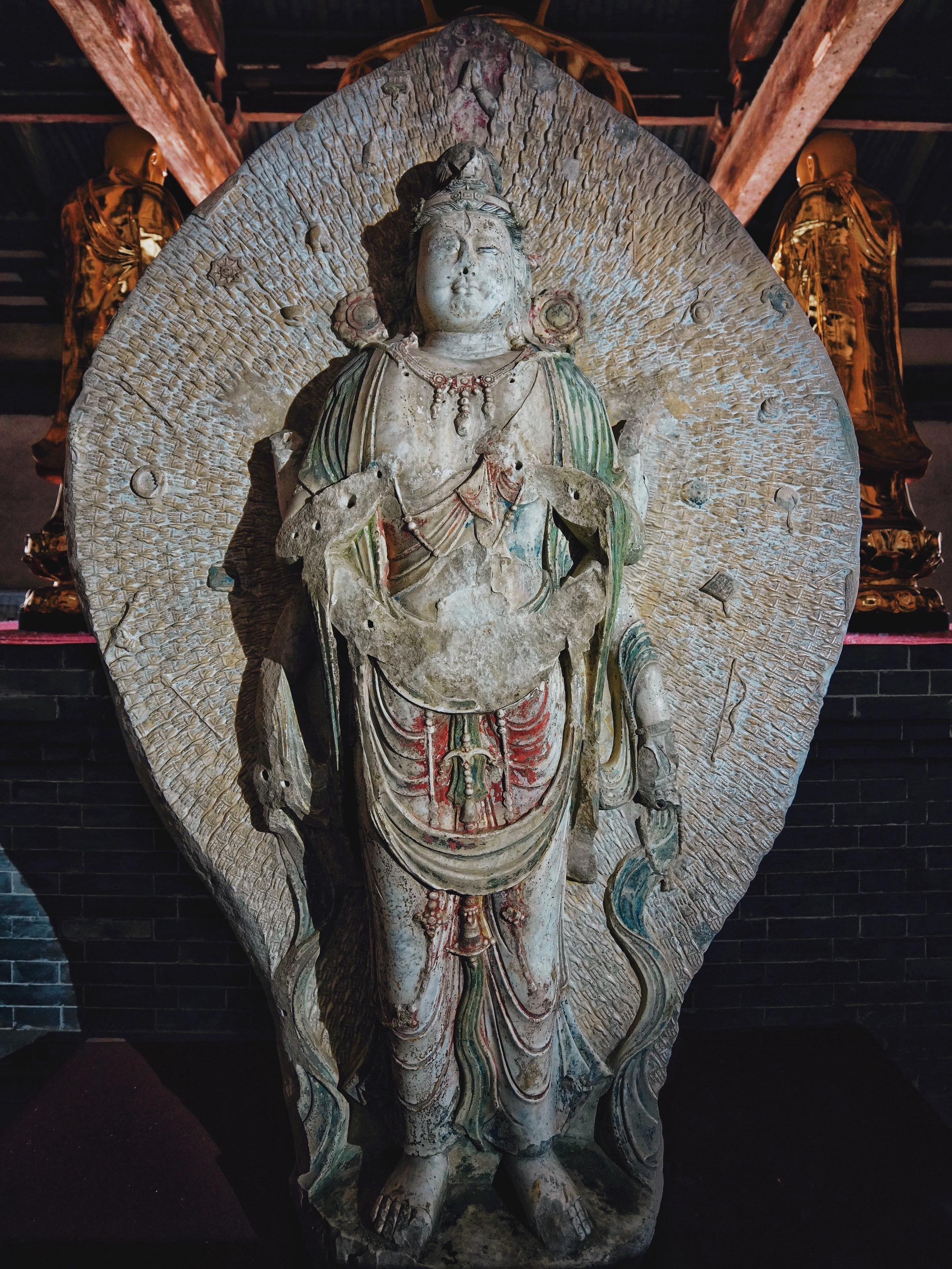 八大辽构之一的开善寺,万万没想到自己在900多年后会因为一场洪水被泡在水里。我去开善寺的时候,因为刚经历过“游泳门”,所以是不对外开放的,幸得对面烧鸡店老板的指点才不虚此行,但进去以后略有失望,感觉这开善寺是八大辽构中最“潦草”的一座,中轴线上仅存三殿,造像都是现代仿品,充满了廉价感,与乡野小庙无异,只有大雄宝殿保留了千年前的木构。我对单檐庑殿顶的古建筑是没有任何抵抗力了,短短的正脊,漫长的垂脊,豪放又粗旷,梁先生说它是“豪劲时期”的建筑,何况还是一座辽构,话说开善寺的命运