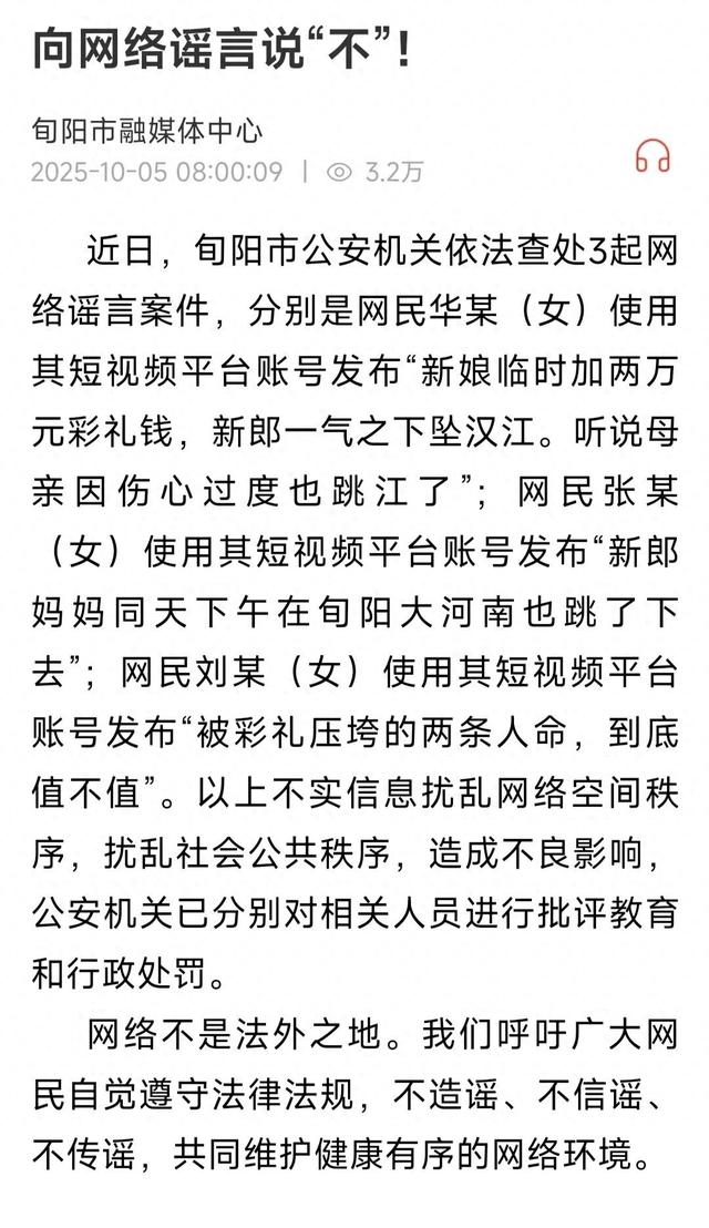 据陕西安康旬阳市融媒体中心10月5日消息,近日,旬阳市公安机关依法查处3起网络谣言案件,分别是: