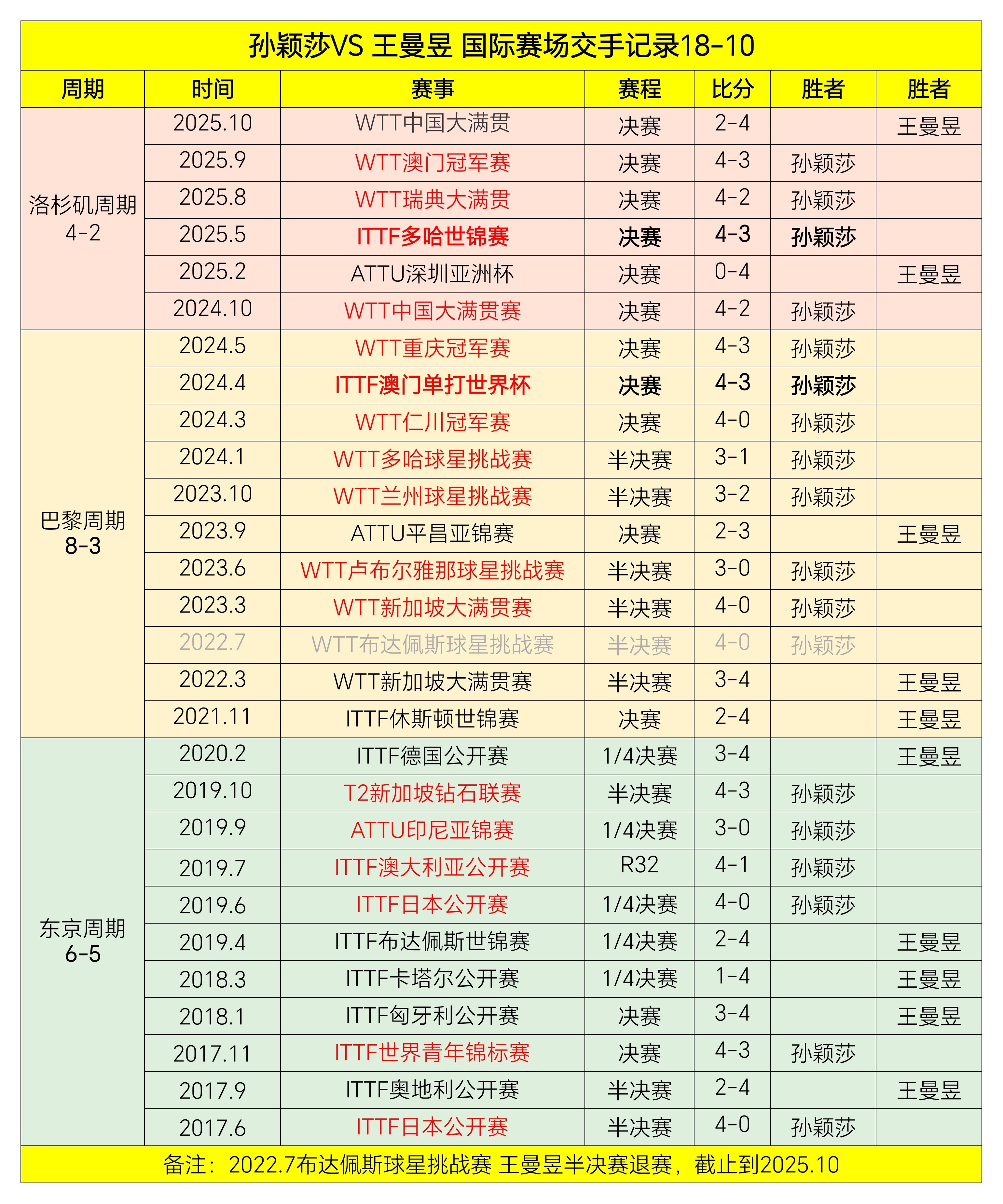 孙颖莎vs王曼昱 🏓2025赛季截止到现在——